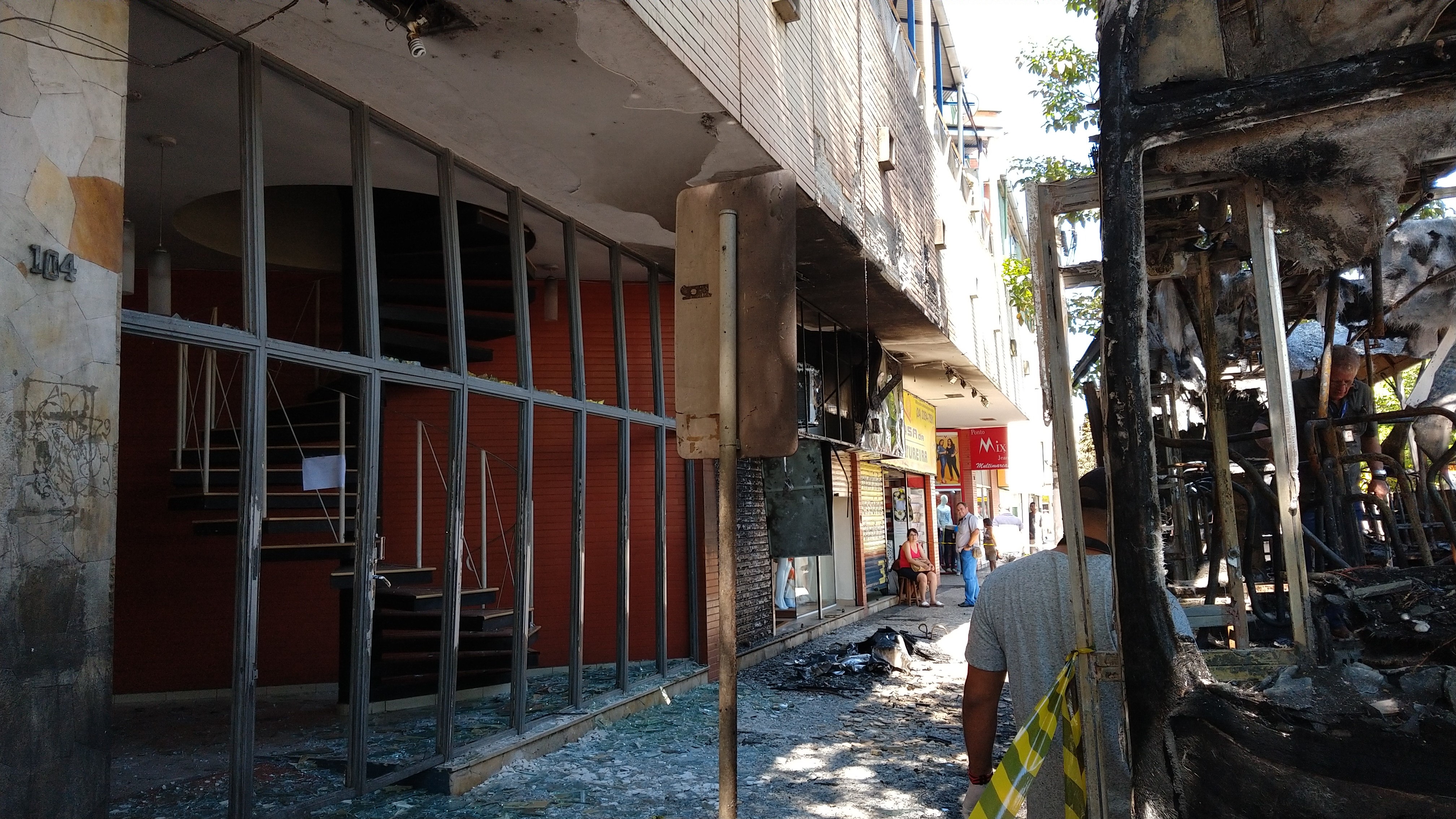 Fachada, janelas, portas e vitrine da Associação Comercial e de duas lojas ficaram danificados pelas chamas-Idelfonso Pinheiro