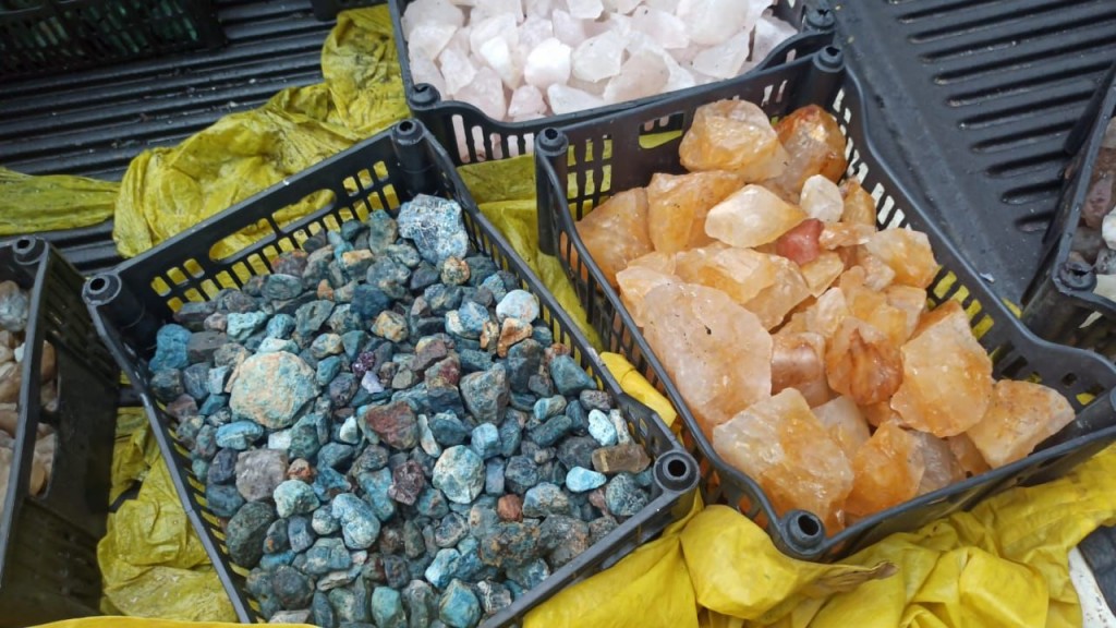 Na tarde de terça-feira, dia 14, agentes do Programa Operação Foco Divisas, ligado à Secretaria de Estado da Casa Civil, e equipes da Polícia Rodoviária Federal (PRF). apreenderam cerca de meia tonelada de pedras semipreciosas, suspeitas de extração ilegal, avaliadas em mais R$ 700 mil. O fato ocorreu em Angra dos Reis e duas pessoas que faziam o transporte das pedras foram presas em flagrante pelo crime de contrabando.