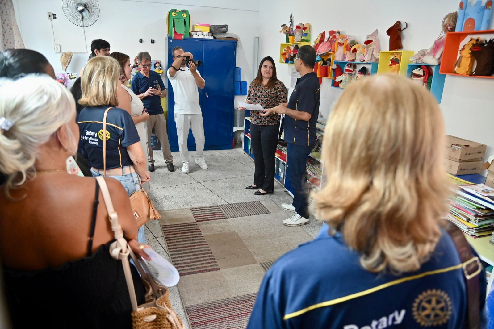 Pela manhã, a entrega aconteceu no Jardim de Infância Municipalizado Professora Júlia Varella, no bairro Vila Nova, com a presença da secretária municipal de Educação, Linamar Carvalho; da diretora da unidade, Marcela Hosken; do presidente do Rotary Club de Barra Mansa Alvorada, Marcos Vinícios Salazar; além de demais representantes da instituição.