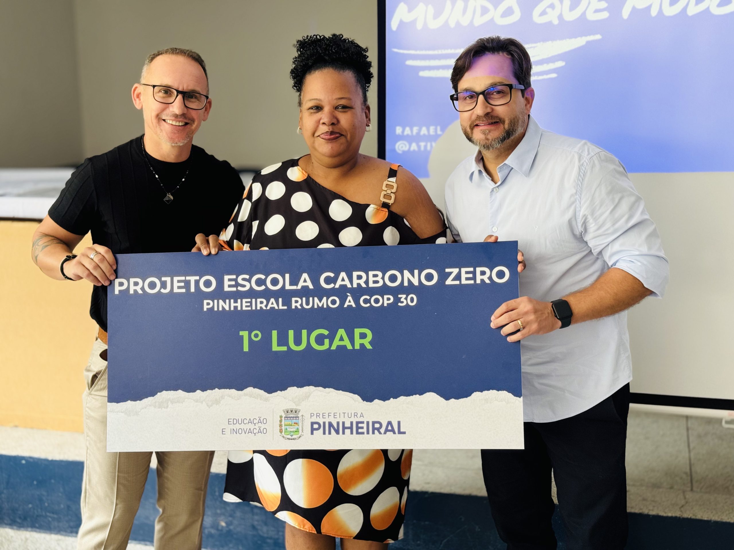 A Prefeitura de Pinheiral, por meio da Secretaria de Educação e Inovação, realizou ontem (02), durante o evento de retorno dos profissionais da educação para o ano letivo de 2026, a cerimônia de premiação do projeto “Escola Carbono Zero – Rumo à COP30”. A iniciativa mobilizou creches e escolas da rede municipal, envolvendo cerca de 4 mil alunos, na redução do consumo de água e energia elétrica, fortalecendo a educação ambiental e incentivando práticas sustentáveis dentro e fora das unidades escolares.