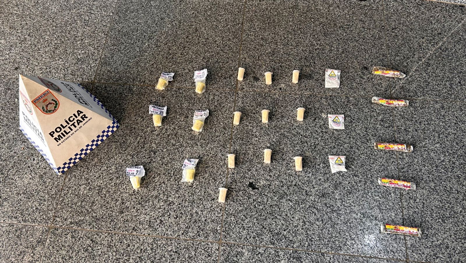 As equipes do Grupamento de Ações Táticas (GAT) se deslocaram até a Rua dos Bombeiros e realizaram buscas nos pontos indicados. Embora nenhum suspeito tenha sido localizado no momento da ação, os policiais encontraram, embaixo de uma escada e em meio ao lixo no bloco 20, uma sacola contendo pinos e papelotes de cocaína, além de tiras de maconha, todas prontas para comercialização.