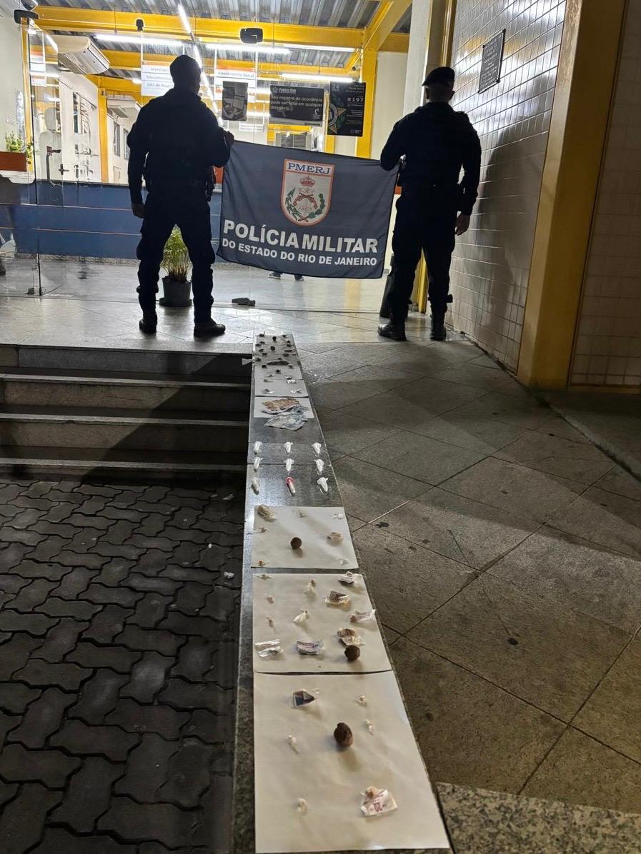 Durante a revista pessoal, nada ilícito foi encontrado com ele. No entanto, às margens do rio, onde o jovem buscava a sacola, os agentes apreenderam 21 pedras de crack, dez unidades de cocaína tipo ‘caneta’, 19 sacolés de maconha, três pinos de skank e R$ 55,35 em espécie. Ele recebeu voz de prisão e foi conduzido à 108ª Delegacia de Polícia (DP), onde foi autuado por tráfico de drogas e permaneceu preso.