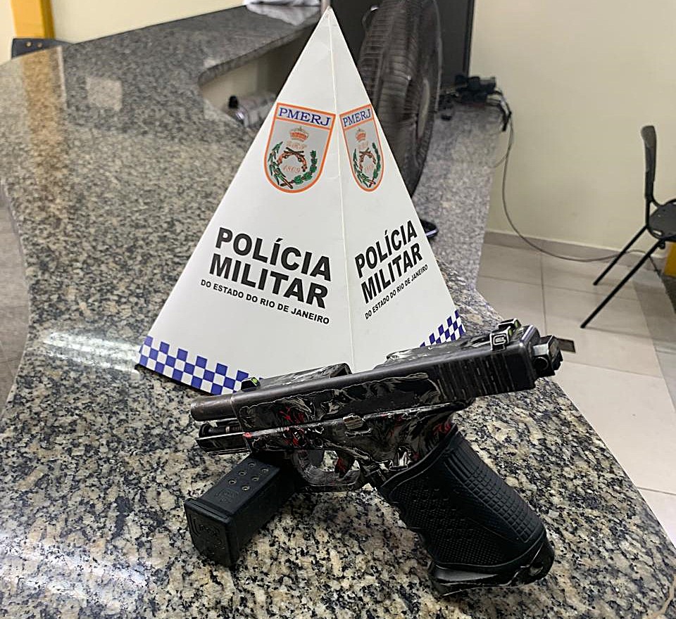 Segundo a Polícia Militar, os policiais receberam denúncia relatando que o suspeito estaria portando arma de fogo na Estrada de Furnas. No endereço, os policiais abordaram o homem e, durante revista pessoal, encontraram na cintura do acusado uma pistola Glock G15 calibre 9mm com numeração suprimida, além de um carregador e 15 munições do mesmo calibre.