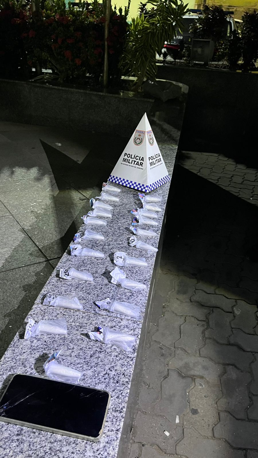 De acordo com a corporação, a equipe realizava patrulhamento de rotina quando recebeu informações sobre a venda de entorpecentes na localidade. Ao chegar ao ponto indicado, os policiais observaram movimentação suspeita e montaram um cerco tático.