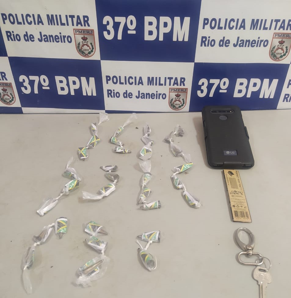 Os policiais faziam patrulhamento pela BR 354 – Rodovia Sebastião Alves do Nascimento quando tiveram atenção voltada para um jovem que ao perceber a aproximação da viatura saiu correndo. Na fuga, ele jogou uma sacola no mato. Após ser alcançado, os militares voltaram o local onde ele havia jogado a sacola e encontraram a sacola com os pinos de cocaína. O jovem confessou a Polícia Militar confessou que estava fazendo tráfico no local.