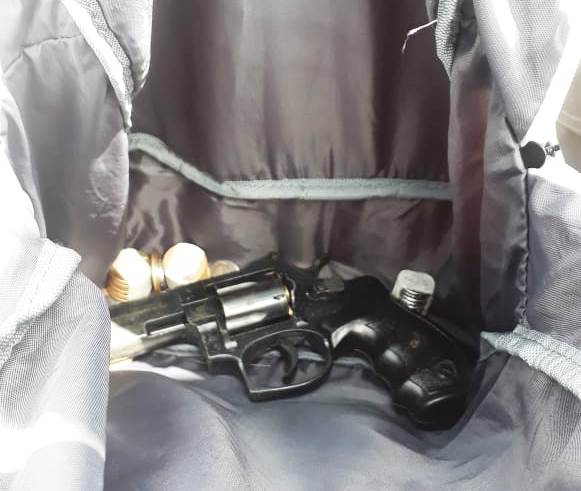 Com o suspeito foi encontrado um revólver calibre 38 e seis munições intactas-Divulgação PM