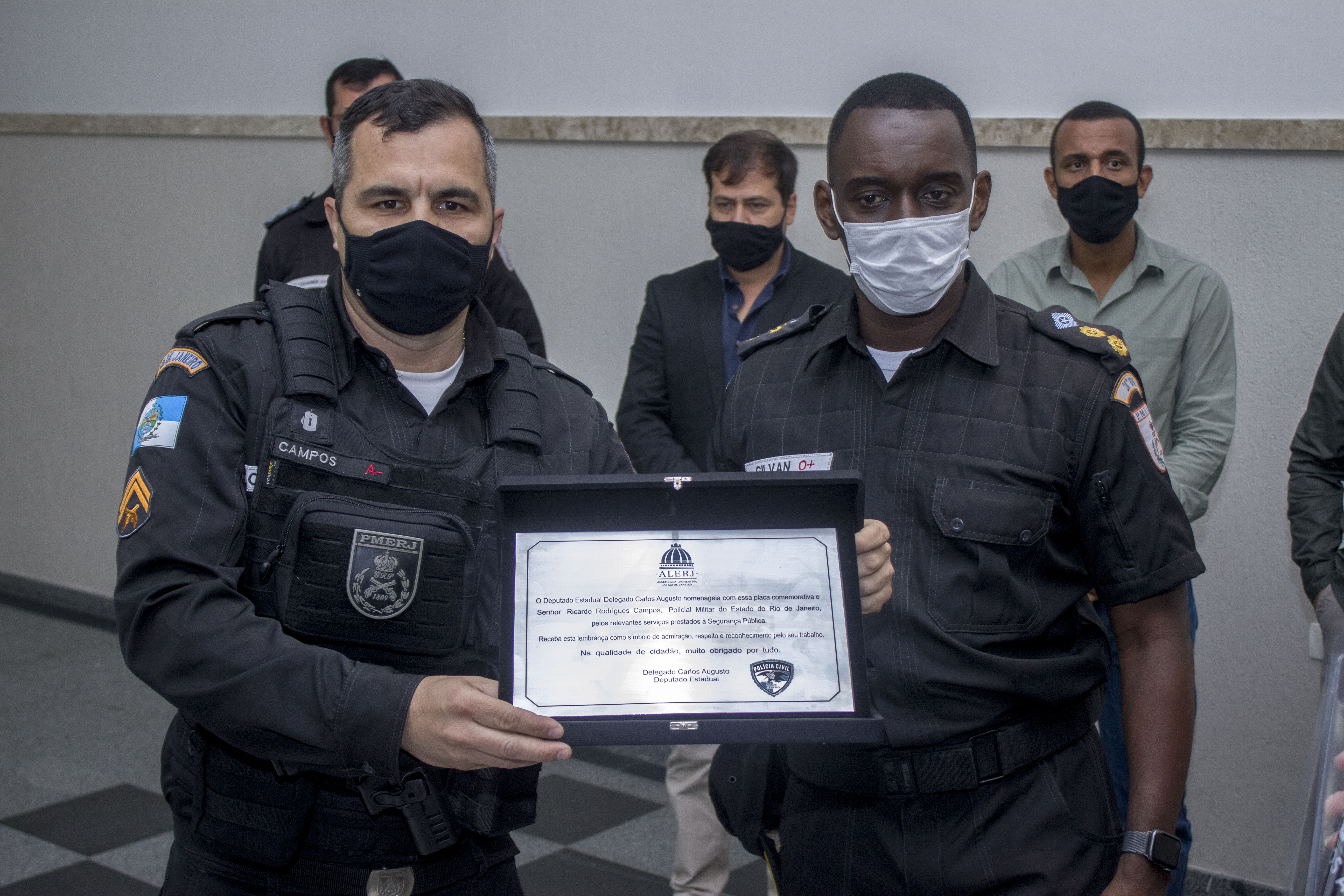 Reconhecer o trabalho dos profissionais que, todos os dias, arriscam suas vidas para manter a segurança pública é um dos objetivos do deputado estadual, Carlos Augusto (PSD). Por esse motivo, o parlamentar realizou na manhã desta quinta-feira, dia 15, na Câmara de Dirigentes Lojistas de Barra Mansa (CDL-BM), uma homenagem a policiais e bombeiros militares em reconhecimento aos relevantes serviços prestados. Na ocasião, foram condecorados os agentes que impediram uma tentativa de assalto a uma joalheria da Avenida Joaquim Leite, no Centro, em novembro de 2020, os policiais Ricardo Rodrigues Campos e Wagner Coutinho de Oliveira. O evento seguiu as regras de prevenção à Covid-19, como a limitação de público, distanciamento social, uso de máscara e álcool gel.