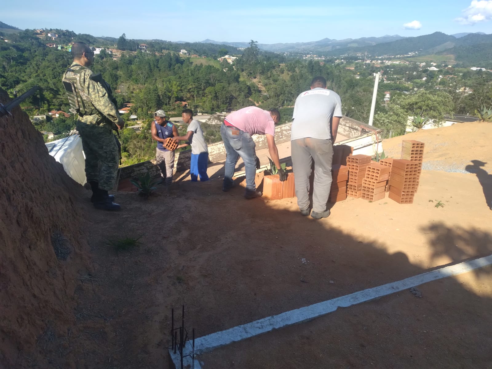 A guarnição constatou uma obra iniciada, já com alicerces e corte de talude. Entretanto, não havia nenhuma pessoa no momento da fiscalização, nem placa que pudesse indicar que a atividade está licenciada pela Secretaria de Meio Ambiente de Miguel Pereira.