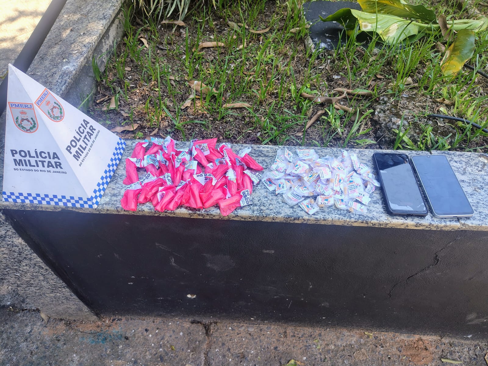 Policiais militares do 37º BPM apreenderam drogas e detiveram dois homens durante uma ação de patrulhamento realizada na manhã do dia 25 de dezembro, no bairro Itapuca, em Resende, no Sul Fluminense. A ocorrência foi registrada como tráfico ilícito de drogas e encaminhada à 89ª Delegacia de Polícia.