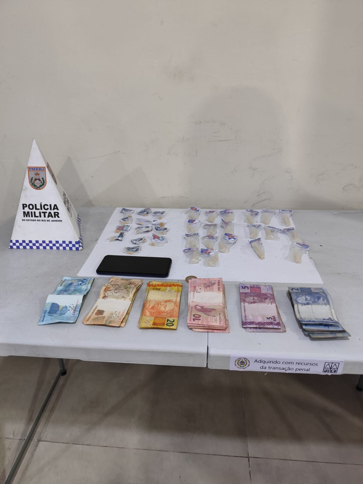 O material apreendido incluía dez gramas de cocaína, cinco gramas de crack e a quantia de R$ 734. Questionado, o suspeito informou que transportava os itens até um ponto conhecido pela prática de tráfico de drogas.