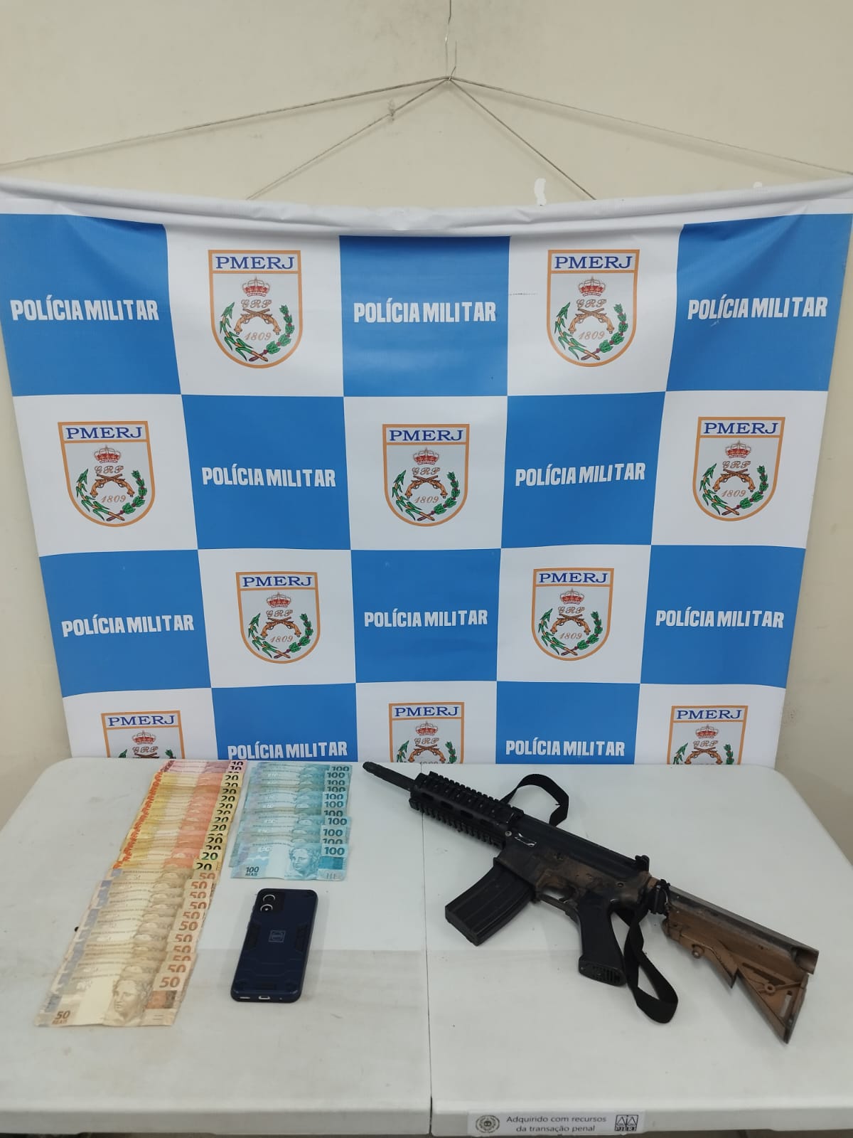 Uma ação da Polícia Militar resultou na apreensão de uma réplica de fuzil e quase dois mil reais em dinheiro na noite de sábado, 20, no bairro Açude II, em Volta Redonda. A ocorrência foi registrada durante patrulhamento de rotina na Avenida Professor Glória Roussim Guedes.
