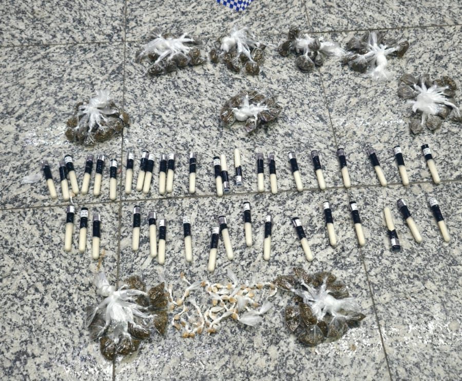 Após refazerem o trajeto utilizado na fuga, os policiais localizaram diversas cargas de drogas espalhadas pela mata. No total, foram apreendidas 40 canetas de cocaína, 120 buchas de maconha e 53 pedras de crack, todas prontas para a comercialização.