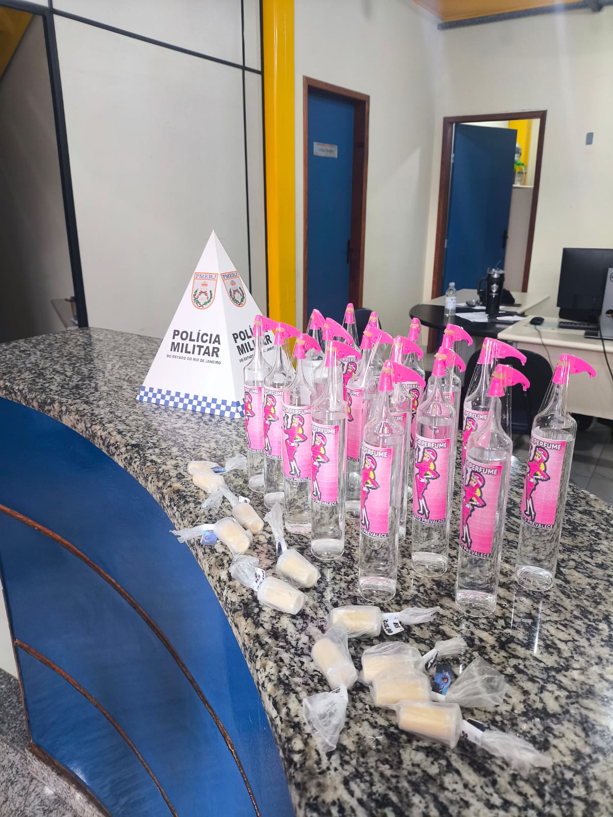 Militares do PATAMO 3, do 28º Batalhão de Polícia Militar, se deslocaram até o endereço e constataram que o imóvel em questão estava abandonado. Durante buscas no local, a equipe encontrou indícios de atividade recente, confirmando a veracidade da denúncia. Em um dos cômodos, foi localizada uma mochila preta contendo 17 frascos de lança-perfume, totalizando aproximadamente 170 ml, além de 11 tambores com cocaína, pesando cerca de 5,5 gramas.