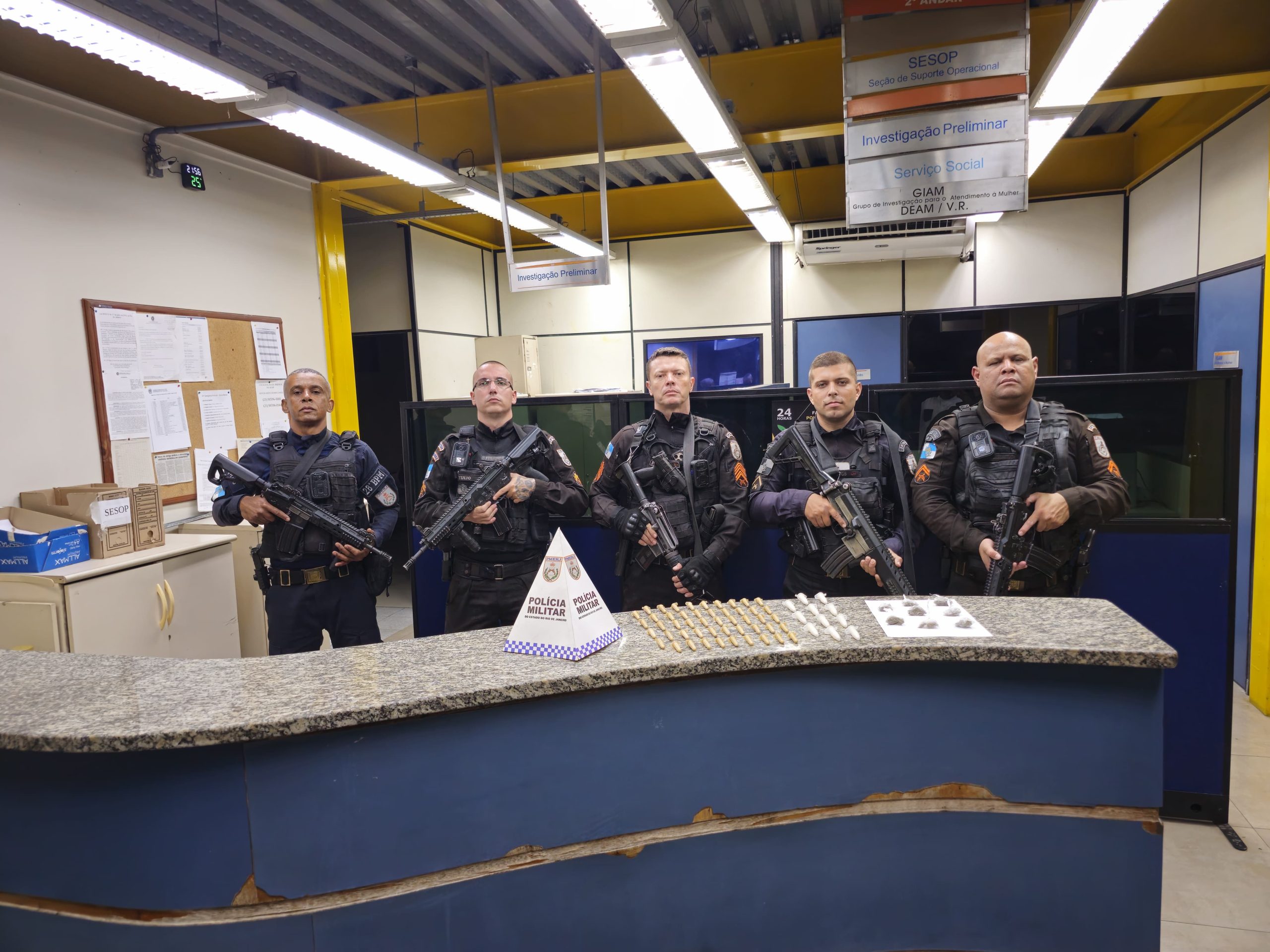 Após denúncia anônima de tráfico de drogas os agentes seguiram para a Rua José Soares onde avistaram dois homens que fugiram pulando no rio após avistarem a viatura.