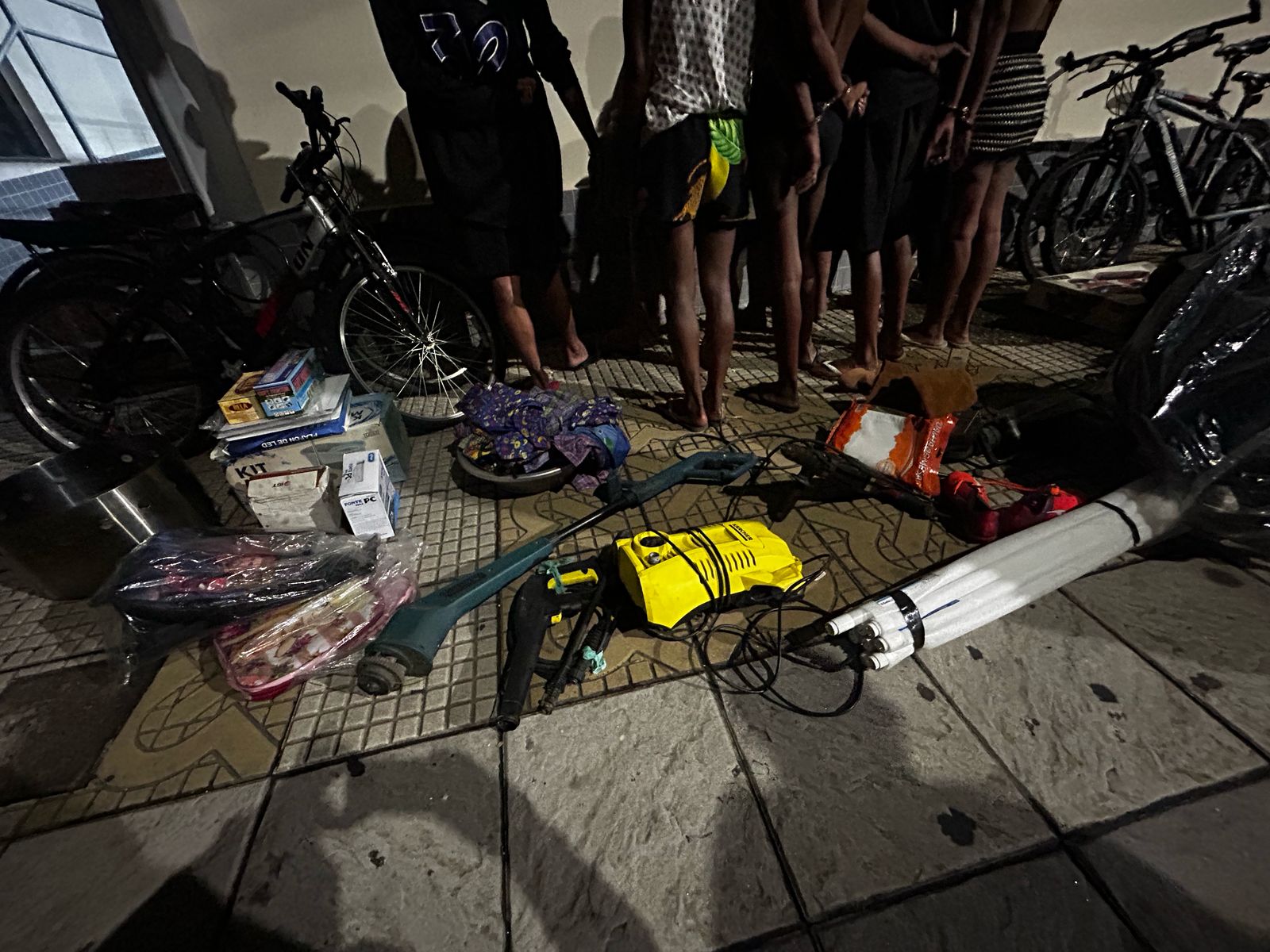 Além das drogas, foram recuperados quatro bicicletas de diferentes marcas e cores, dois marteletes, uma furadeira, uma roçadeira, duas lavadoras de alta pressão, cinco notebooks, dois celulares, uma caixa de som, um bebê conforto, uma fonte para PC Knnup, duas mochilas infantis, um jogo de panela, uma câmera filmadora profissional, um kit de transmissão para moto Smart Fox, uma fritadeira industrial, uma bota de camurça, uma chuteira infantil, 12 lâmpadas fluorescentes, quatro plafons de LED, duas bolsas, um aparelho nebulizador, uma peça mecânica redutor de pressão, uma toalha de mesa, uma fechadura, 13 roupas infantis estampadas ainda com lacre de segurança e um brinquedo no formato de óculos com mola, ainda com a etiqueta de uma loja de departamentos.
