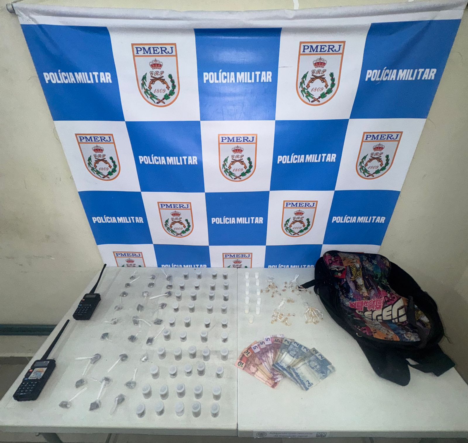 De acordo com a ocorrência, equipes do Serviço Reservado (P2) e do Grupo de Ações Táticas (GAT) I realizavam operação de combate ao tráfico na Rua Sete quando abordaram um homem em atitude suspeita. Durante a ação, os policiais apreenderam 12 gramas de crack, dez gramas de cocaína, 60 gramas de maconha e R$ 50 em dinheiro.