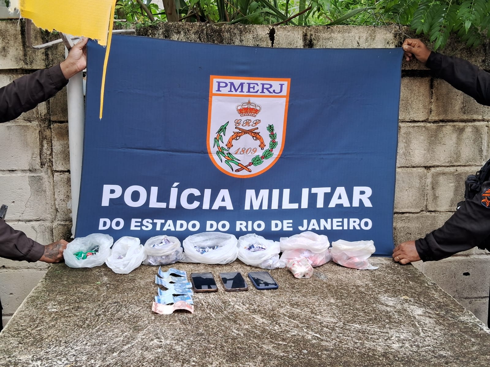 Durante as buscas pessoais, os policiais encontraram uma grande quantidade de material entorpecente, além de dinheiro em espécie e três aparelhos celulares. Após a condução à 88ª Delegacia de Polícia (DP), o material apreendido foi encaminhado para perícia, que confirmou tratar-se de aproximadamente 130 gramas de crack e 408 gramas de cloridrato de cocaína.