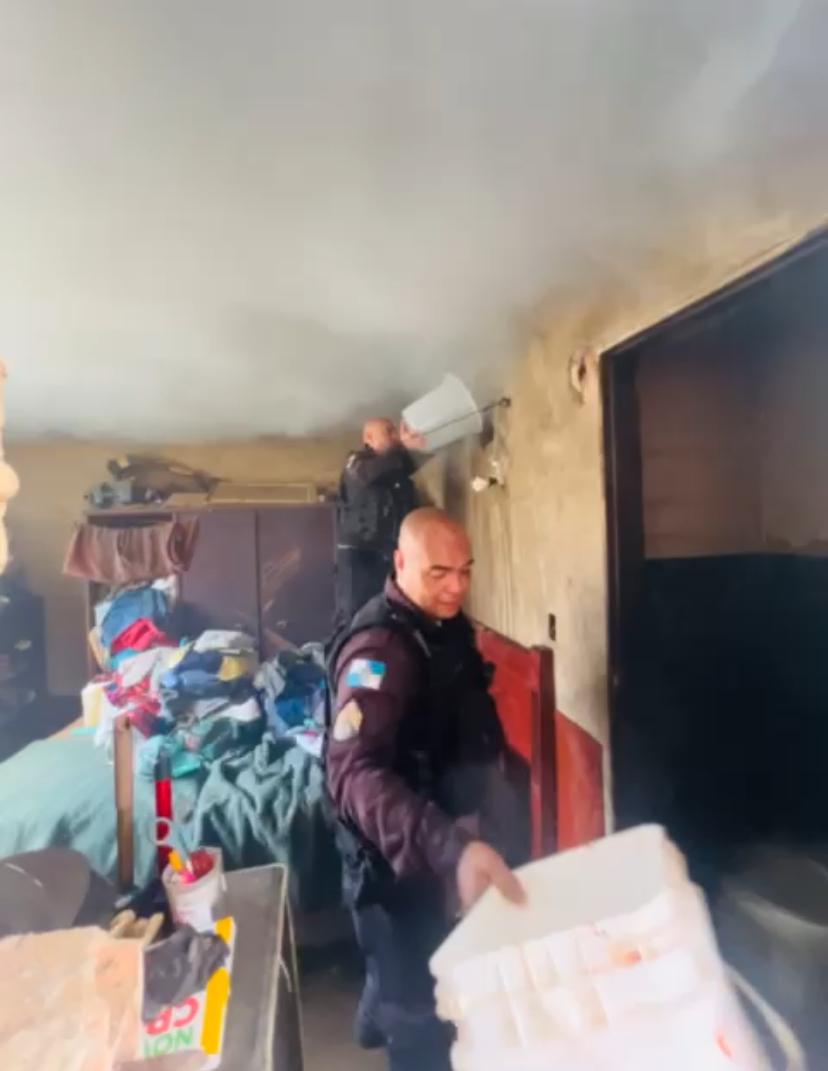 Após o resgate, os policiais atuaram para conter as chamas, conseguindo apagar o incêndio antes da chegada do Corpo de Bombeiros.