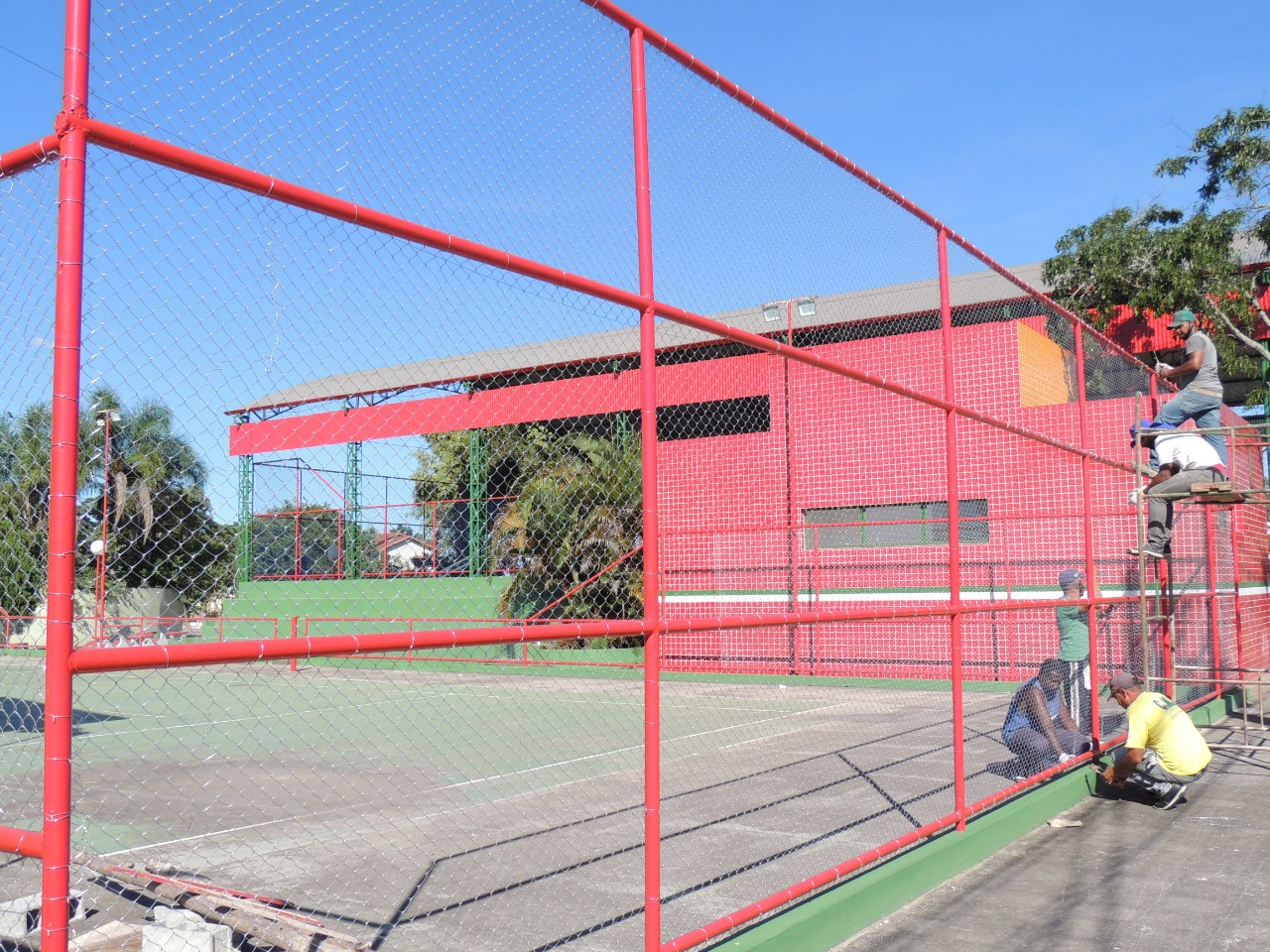 A revitalização das unidades esportivas é um dos trabalhos que estão sendo realizados pela Secretaria Municipal de Obras e Serviços Públicos. Na quarta-feira, dia 20, os serviços foram retomados no Complexo Esportivo do bairro Nova Colônia, onde a quadra de tênis passa pela troca de alambrado.