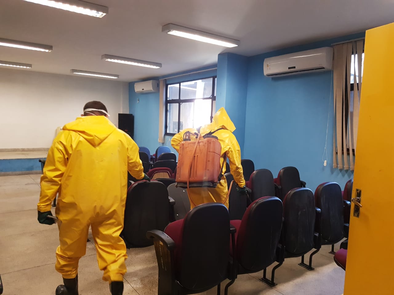 O serviço foi coordenado pela pelas secretarias de Saúde, por meio da Divisão de Vigilância Sanitária e a de Obras. Para a higienização de salas, da recepção, corredores, escadas e banheiros foi utilizado uma solução de água com hipoclorito (água sanitária).