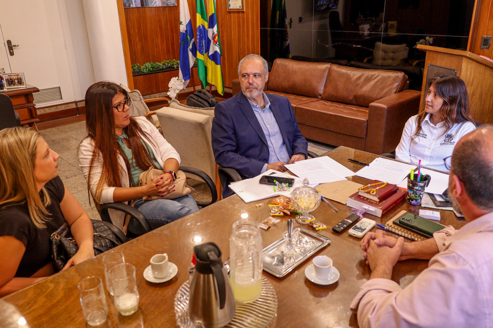 O encontro aconteceu no gabinete da prefeita e contou com a presença do secretário municipal de Trabalho e Desenvolvimento Econômico, Tadeu Oliveira.