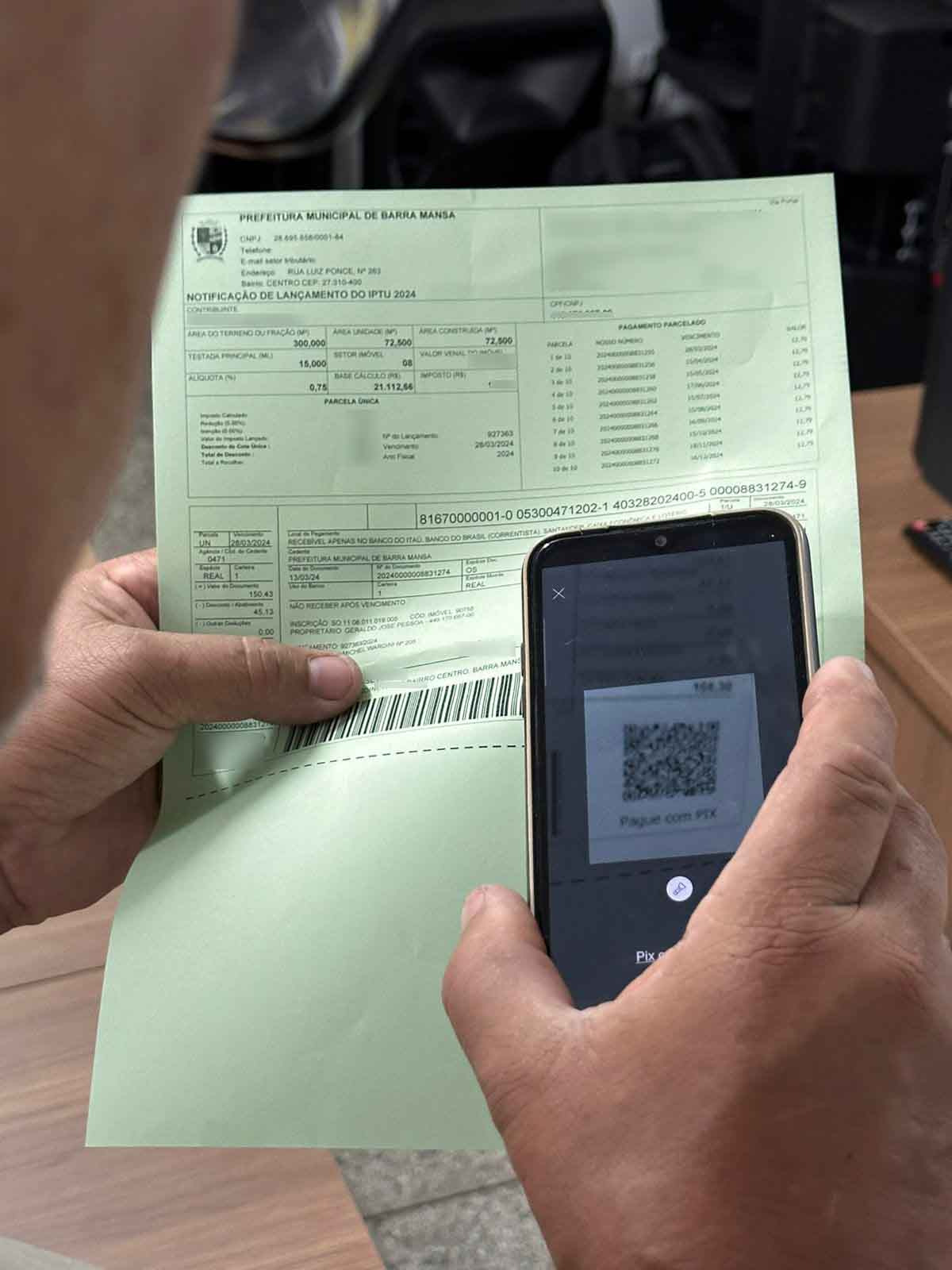 Para utilizar o serviço, o contribuinte deve acessar o site oficial da Prefeitura, na seção Serviços Finanças (gp.srv.br/tributario/barramansa/portal_serv_capa?6), ou comparecer presencialmente ao térreo do Centro Administrativo Municipal, onde está disponível o QR Code para pagamento. Basta apontar a câmera do celular para o código impresso no documento.