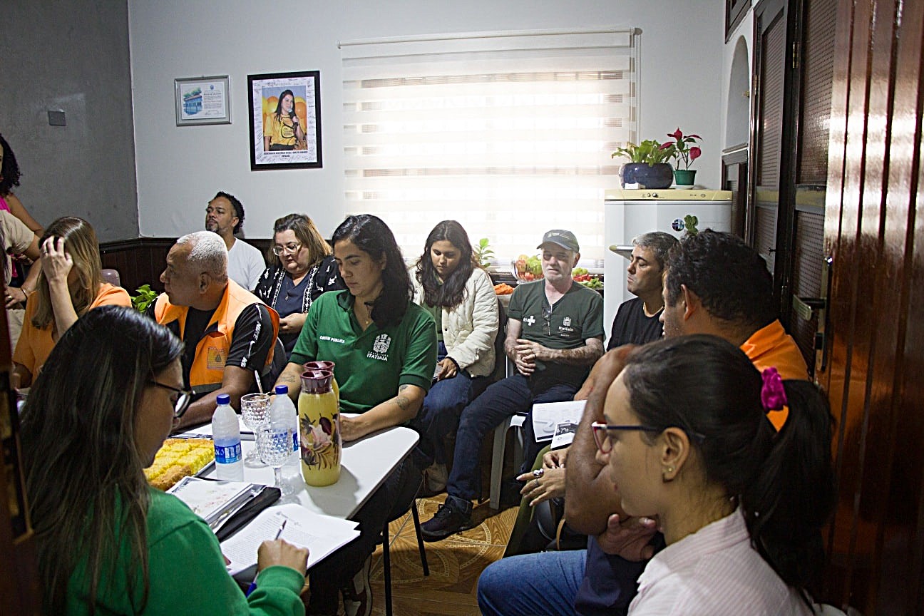 A Prefeitura de Itatiaia, por meio da Secretaria de Assistência Social e Direitos Humanos, realizou, na tarde de segunda-feira, dia 26, uma reunião com equipes da administração municipal para a elaboração de um Plano Emergencial Intersetorial de Crise, voltado à prevenção, à resposta rápida e à redução dos impactos provocados pelas chuvas intensas previstas para os próximos dias no município. O encontro contou com a participação e parceria das secretarias municipais de Assistência Social e Direitos Humanos, Habitação, Educação, Saúde, Obras, Procuradoria, Planejamento, Defesa Civil e Comunicação, além da presença da vice-prefeita, Angela Maria Barbosa Sampaio, a dona Angela.