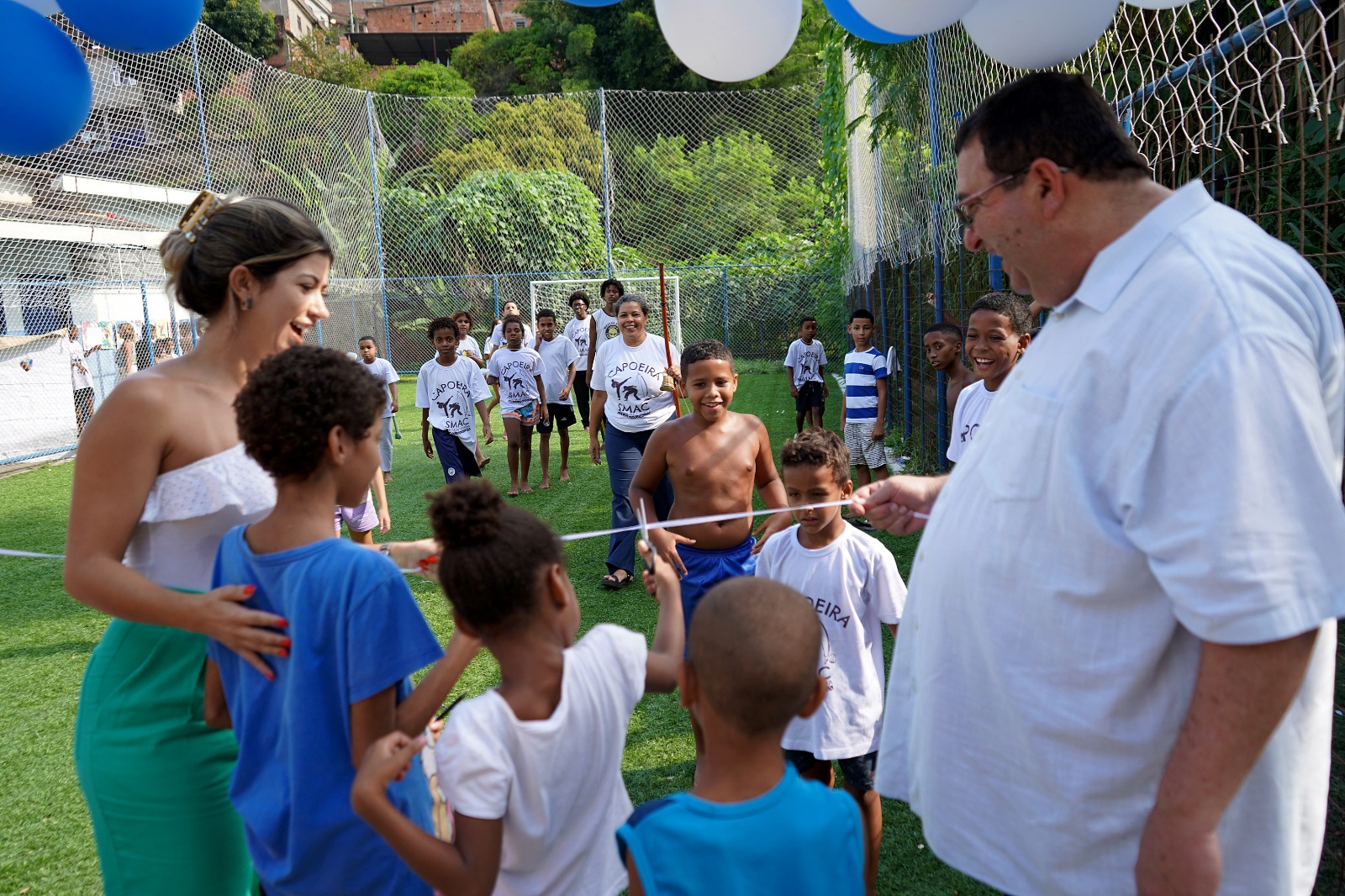 A inauguração contou com uma programação diversificada, incluindo amistoso de futebol, roda de capoeira e taekwondo, além de distribuição de pipoca, algodão doce e picolé, promovendo integração entre as famílias da comunidade.