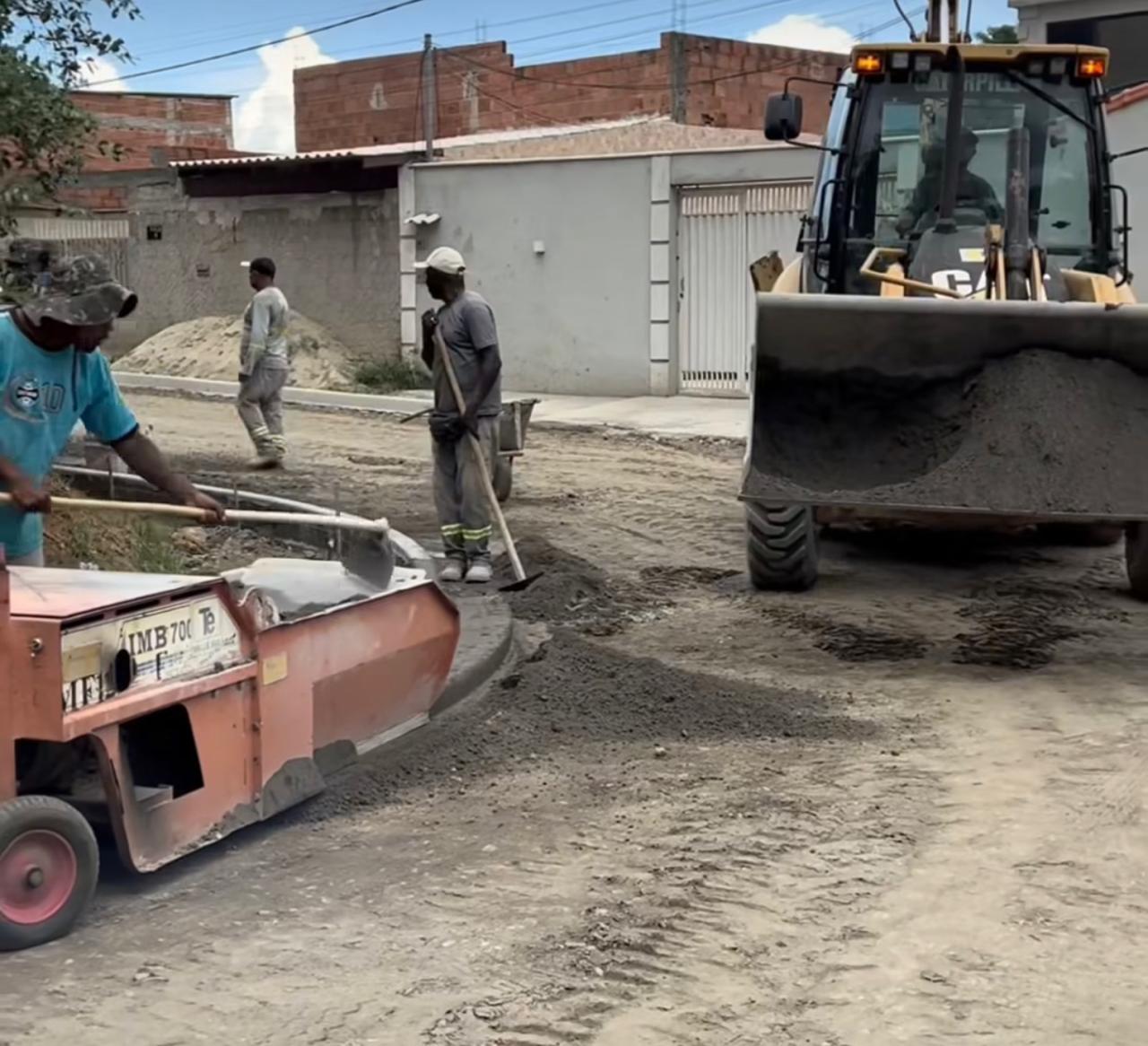 Além da drenagem, as equipes realizam a instalação de meio-fio e canaletas ao longo das ruas, direcionando corretamente o fluxo das águas pluviais. O trecho, que antes era de chão batido, está sendo completamente transformado e, nas próximas semanas, receberá asfalto novo, trazendo mais conforto, redução da poeira, valorização dos imóveis e melhoria na qualidade de vida da população.