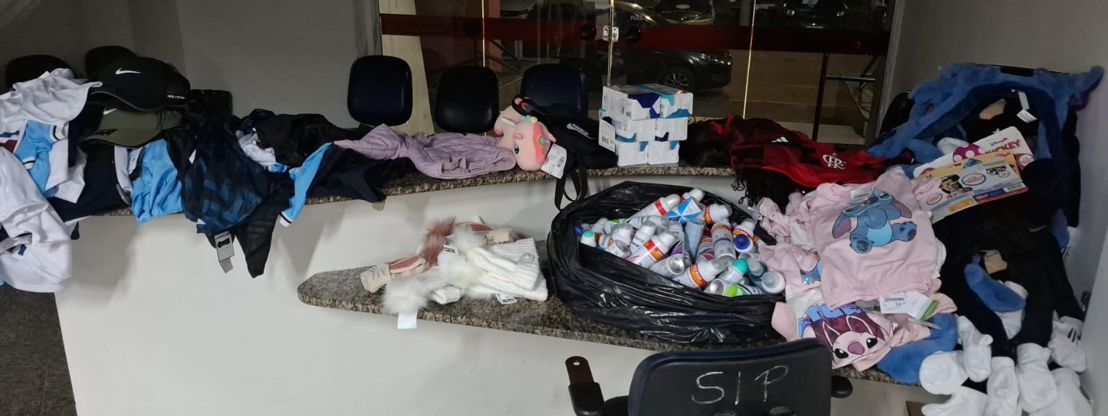 Com as informações, equipes da 7ª Delegacia da PRF, de serviço na Unidade Operacional Caiçara, no km 233 da Dutra, em Piraí, permaneceram em alerta e conseguiram interceptar o carro por volta das 20h30. No veículo estavam o motorista e as três suspeitas. Durante a abordagem, foram encontradas sacolas plásticas com diversas mercadorias de lojas como Riachuelo, Pernambucanas e Havan. Entre os itens havia peças de roupa, acessórios e produtos de perfumaria, muitos ainda com dispositivos antifurto.