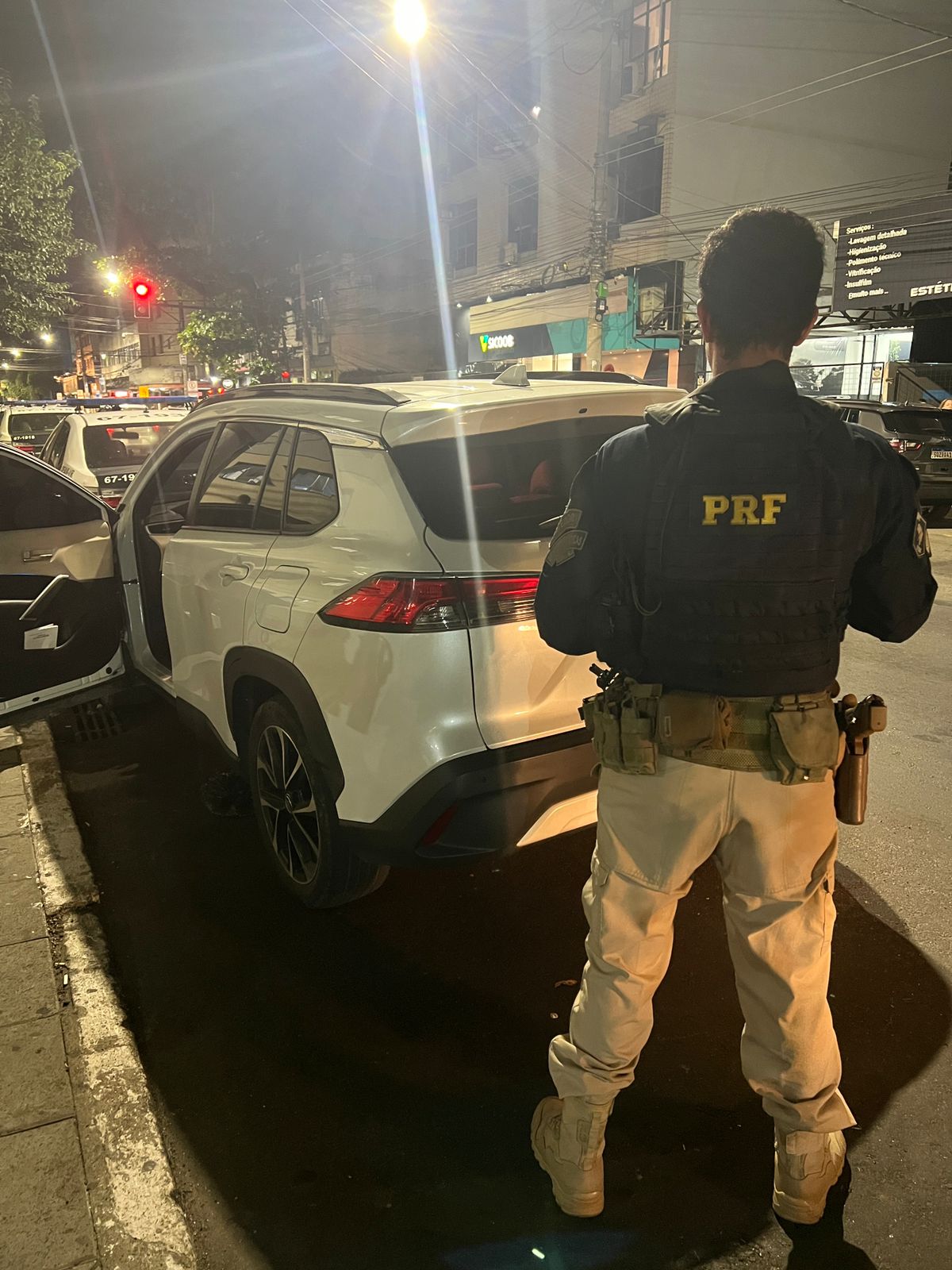 Os agentes haviam recebido informações sobre um Toyota Corolla Cross XRX Hybrid, com placas de São Paulo, que havia fugido de uma abordagem policial em Niterói (RJ) e estaria circulando pela rodovia. Durante o patrulhamento, o veículo foi encontrado estacionado em uma praça próxima à BR-393.