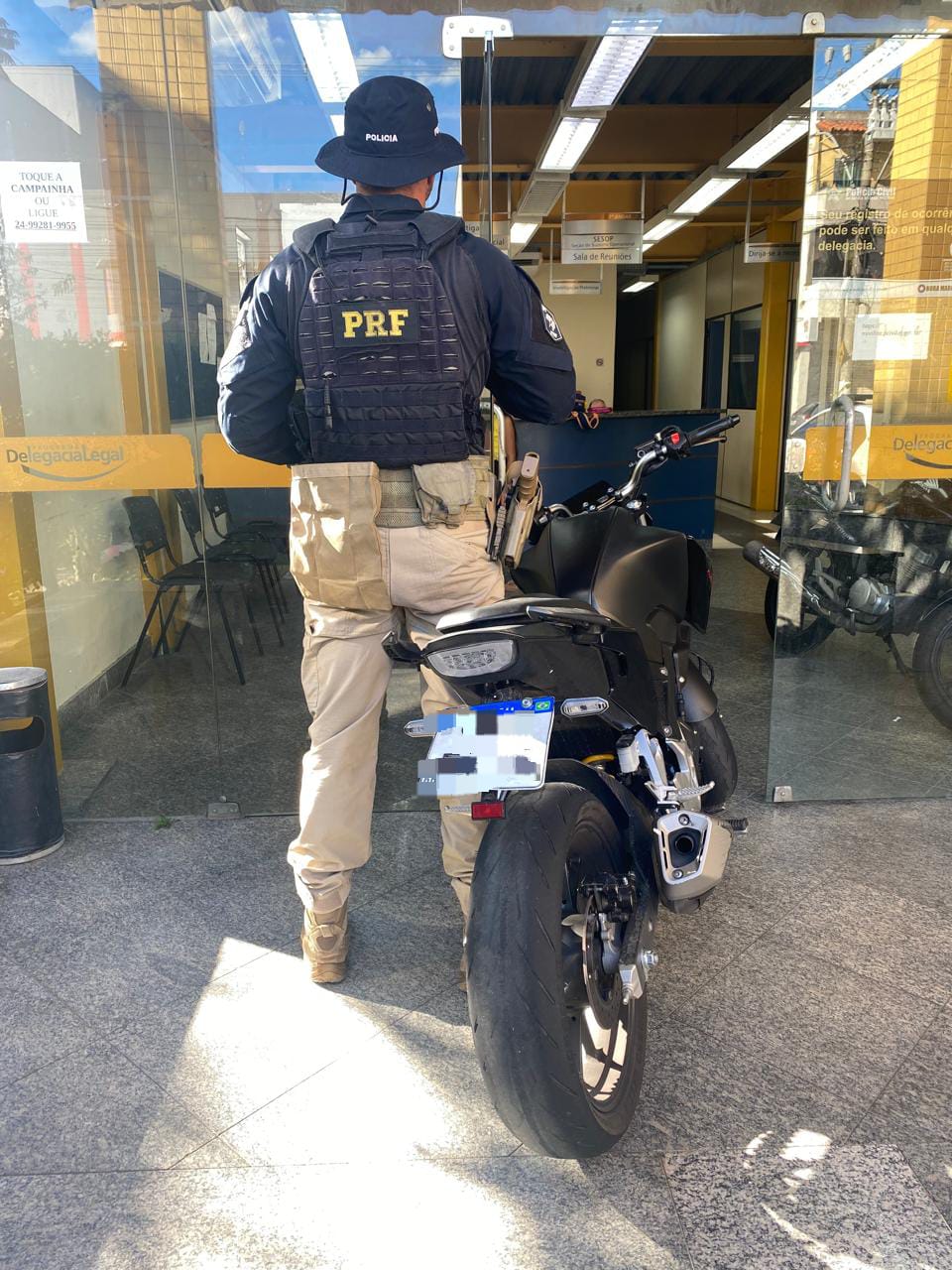 Ao consultar os sistemas da PRF, os agentes verificaram que o veículo possuía registro de furto ocorrido em 28 de dezembro de 2024, no município do Rio de Janeiro. Através da análise dos elementos identificadores da motocicleta, que estavam íntegros, foi possível confirmar que se tratava realmente do veículo furtado. O condutor, entretanto, não foi localizado.