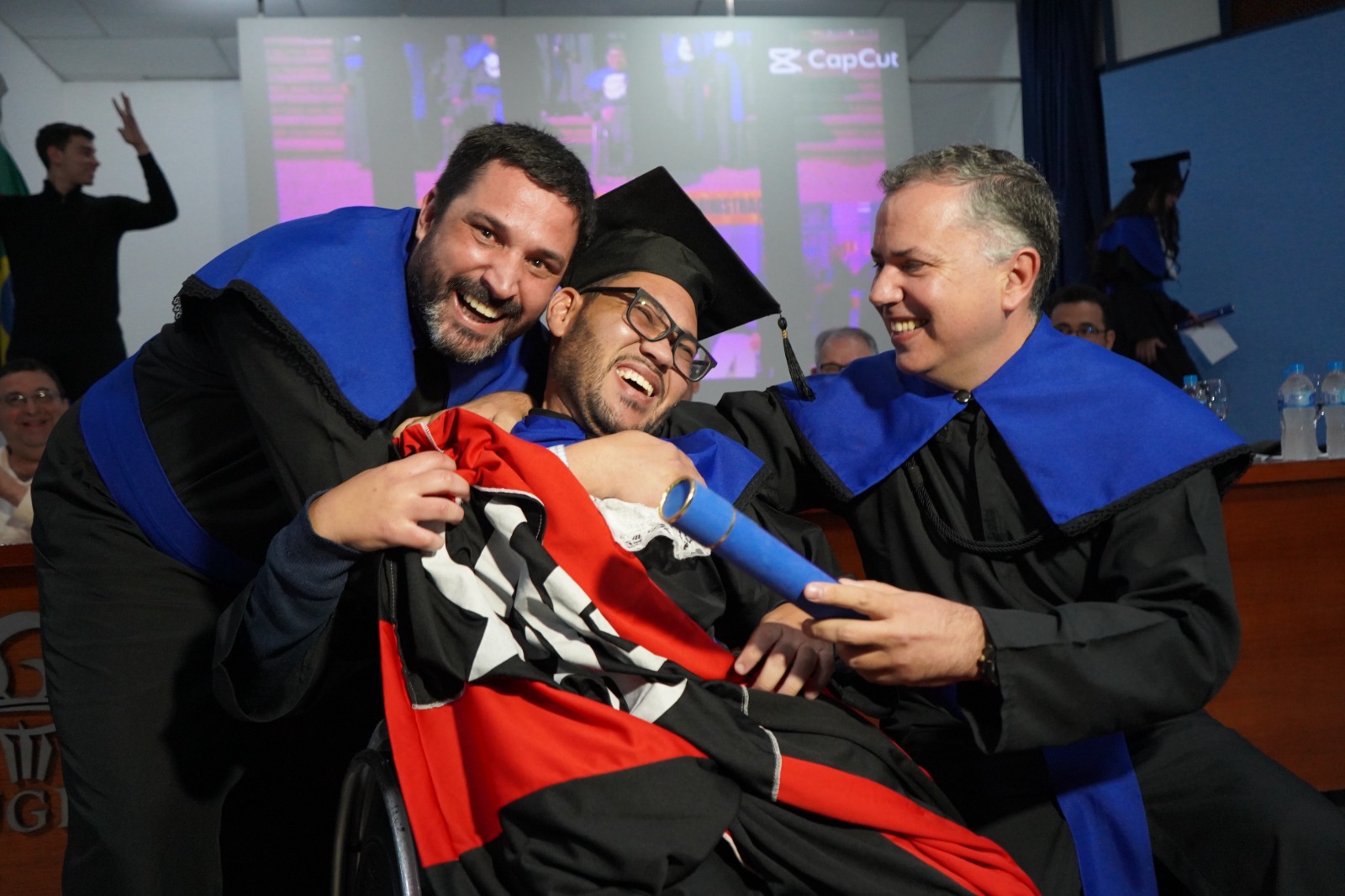 A cerimônia de formatura da primeira turma do curso superior gratuito e exclusivo de Administração para Pessoas com Deficiência (PCD) foi marcada por emoção, superação e reconhecimento na noite de sexta-feira, dia 15, em Volta Redonda. O evento ocorreu no auditório Milton Carlos, no campus Aterrado do Centro Universitário Geraldo Di Biase (UGB), parceiro da Prefeitura no projeto “Diploma Cidadão”. Ao todo, 25 alunos foram diplomados.