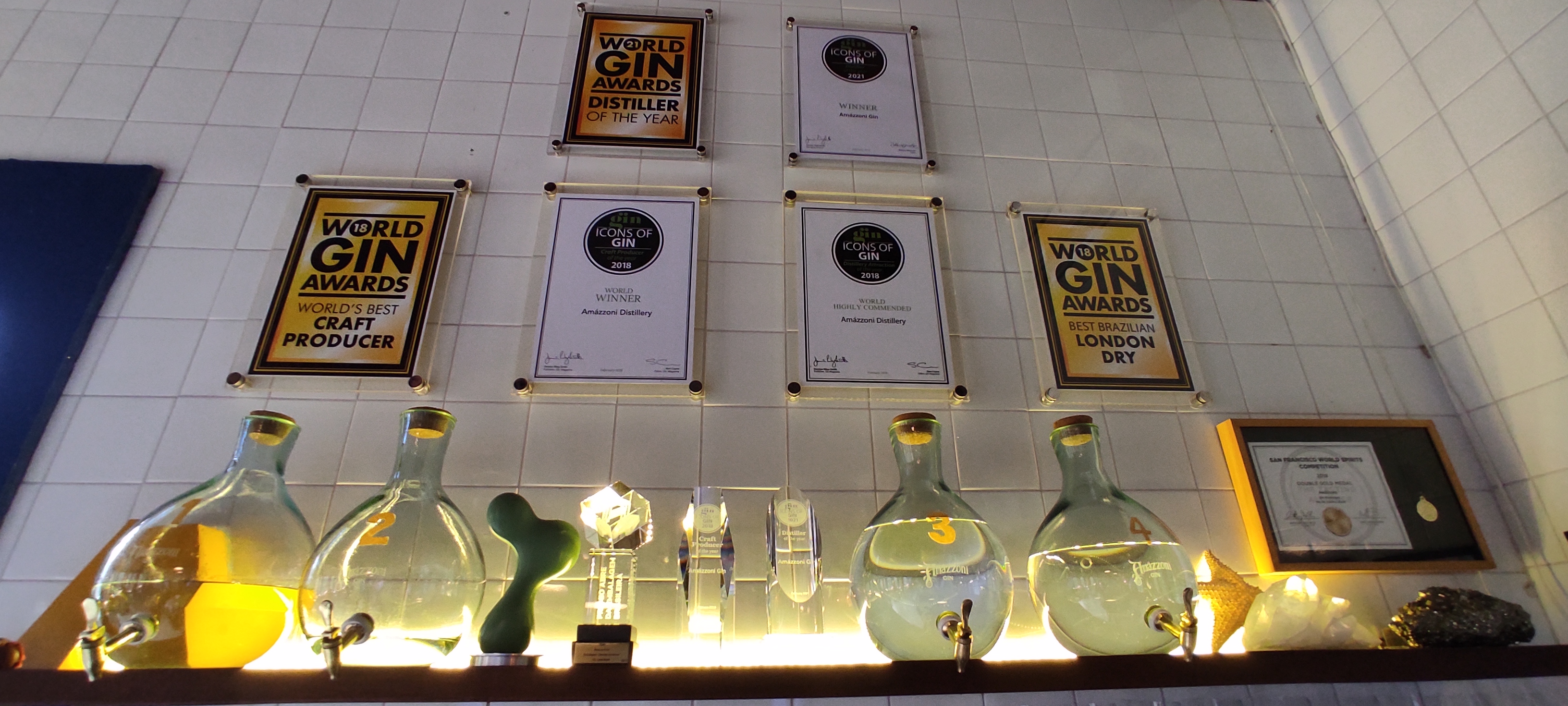 Alguns dos outros prêmios que enfeitam a parede da empresa é o Double Gold Medal, de São Francisco, de 2019, de maior conhecimento de destilados; além de ter ganhado um prêmio logo quando a marca foi lançada, em 2017, de melhor embalagem. O último veio em 2021, de ‘destilaria do ano’, no World Gin Awards.