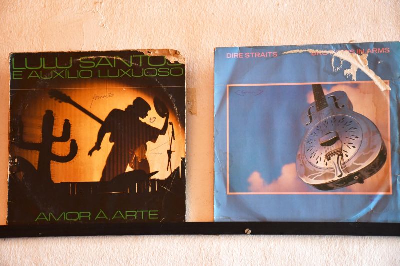 Com o tema “Lendas da Guitarra”, a exposição reúne capas de discos de artistas e bandas que marcaram a história da música com o instrumento. Entre os nomes selecionados estão Jimi Hendrix, Lulu Santos e Eric Clapton, além de grupos como Led Zeppelin, Dire Straits e Novos Baianos.