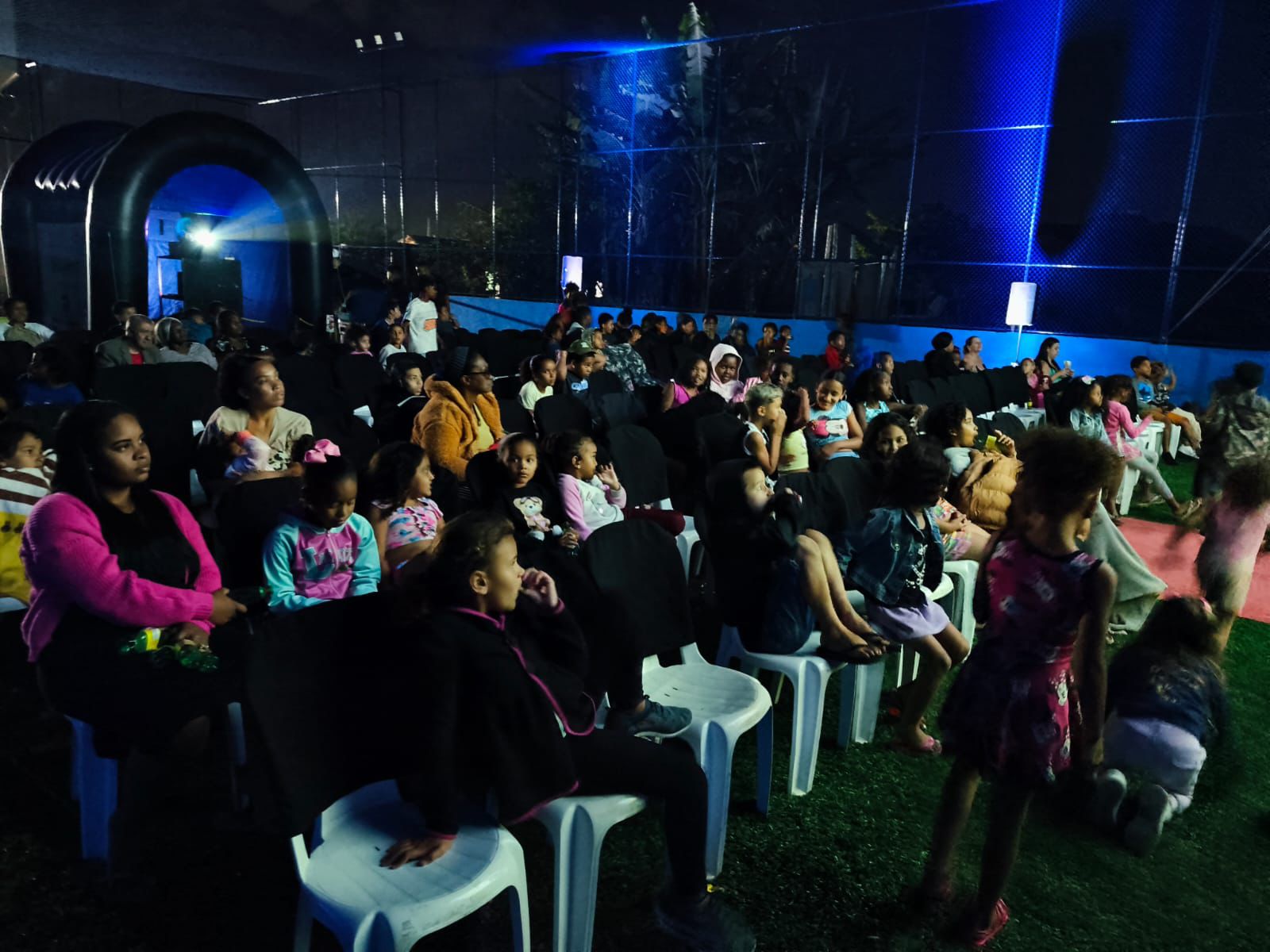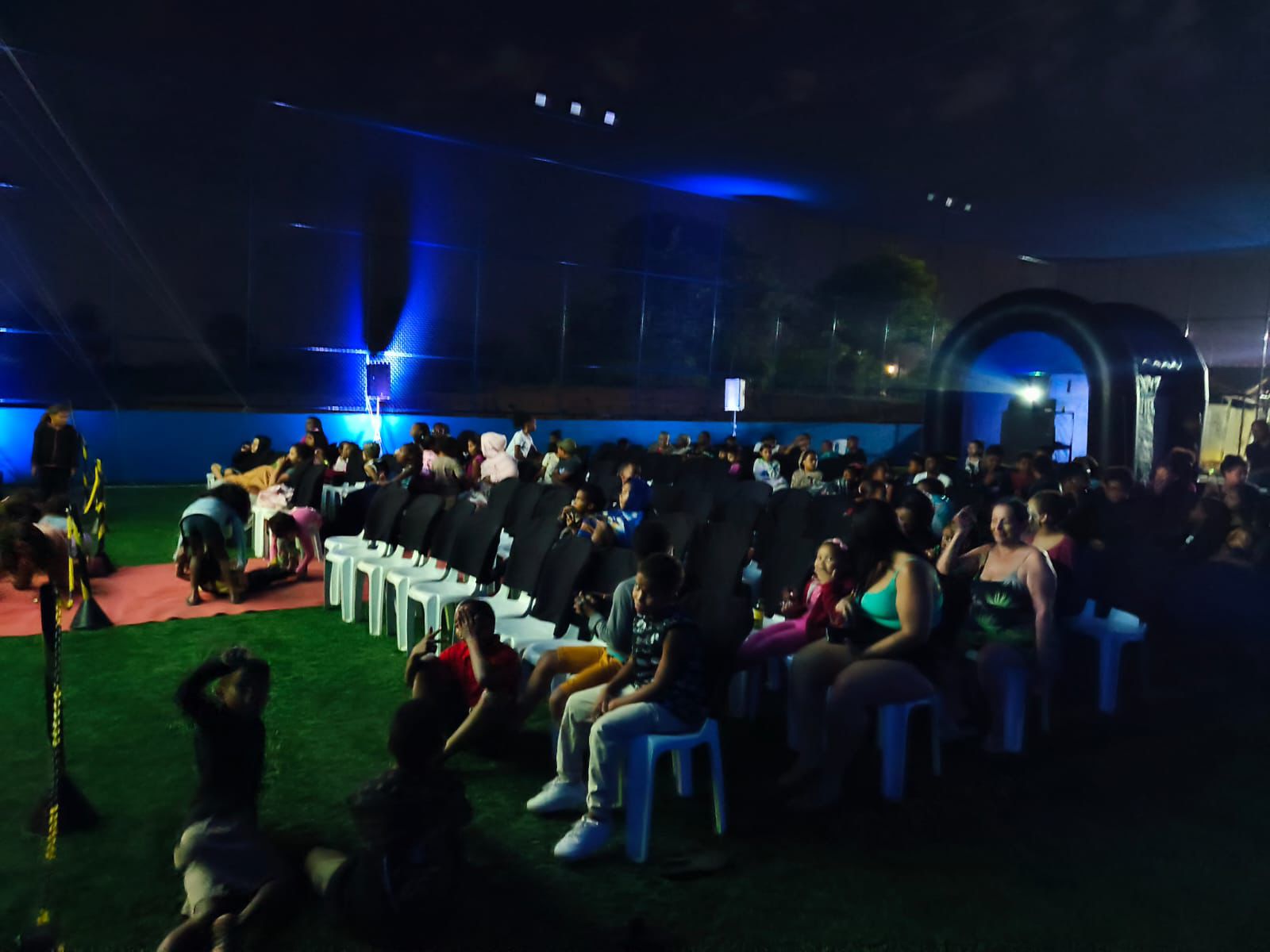 No bairro Paraíso de Cima, as sessões foram realizadas nos dias 20 e 21, transformando a quadra local em um espaço de convivência para as famílias. A estrutura montada, com telão, cadeiras, sistema de som e ambientação especial, atraiu moradores de todas as idades, criando um clima de entusiasmo, acolhimento e integração. Crianças e adultos prestigiaram os filmes nacionais e aproveitaram a oportunidade de viver uma experiência cultural dentro da própria comunidade.