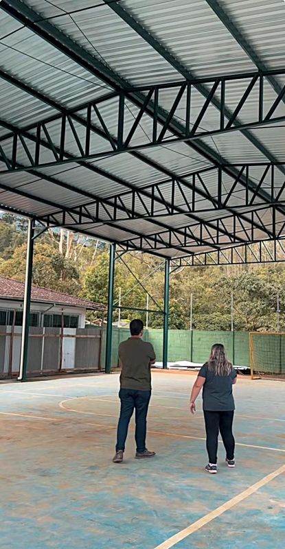 A reforma da Escola Municipal Joaquim Miguel dos Santos, localizada em Maromba, na região serrana de Itatiaia, entrou na reta final. A unidade está recebendo nova cobertura para a quadra poliesportiva, uma antiga demanda de alunos, profissionais da educação e famílias da comunidade. O investimento total é de R$ 369.489,02, com recursos próprios da Prefeitura de Itatiaia. A previsão é que a obra seja concluída neste trimestre, reforçando a infraestrutura da rede municipal de ensino na região de Maromba e Maringá.