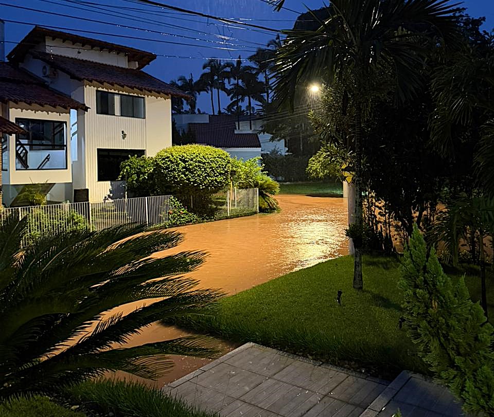 As chuvas intensas também causaram quedas de árvores e deslizamentos em diferentes regiões da cidade. Na Rua General Prati de Aguiar, no bairro Tangará, uma árvore caiu sobre o telhado de uma residência.