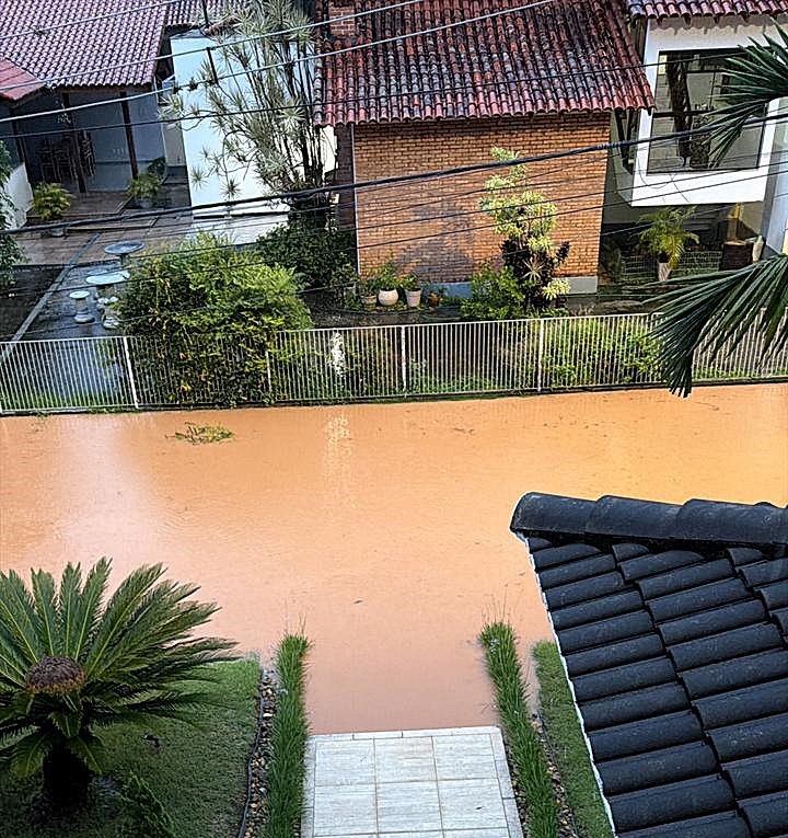 Rio Sesmaria transborda, atinge imóveis e causa alagamentos em Resende