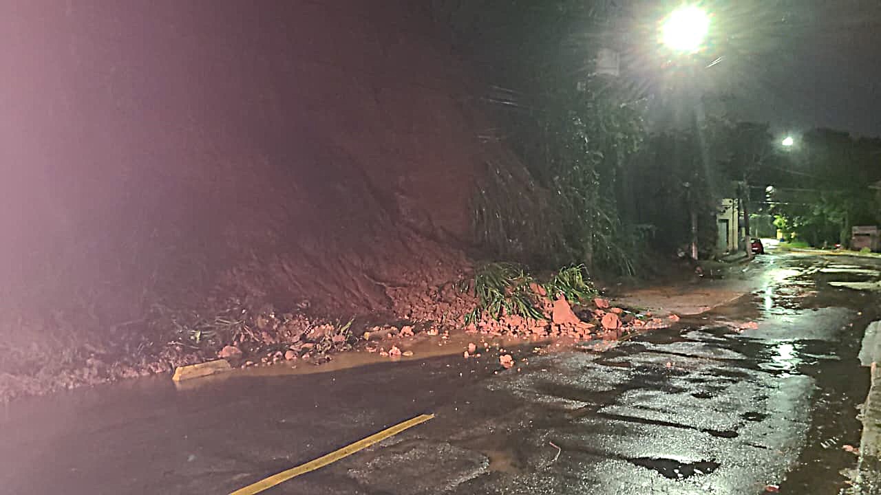 Também foram registrados deslizamentos parciais na Rua João Pessoa, no bairro Vila Nova, e no final da Avenida Ayrton Senna, início da Rua Rodolfo Anechino, no bairro Surubi Velho.