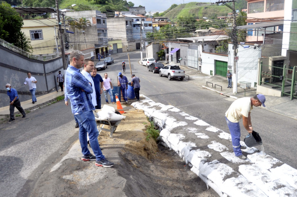 Depois partiram para o bairro Santa Clara, onde acontece a ampliação da rede de drenagem do córrego da Rua Dez, que tem previsão de ser concluída dentro de 20 dias. O vereador Paulo da Gráfica lembrou que lá sempre foi um ponto de alagamento quando o Rio Barra Mansa enche. E o problema estará solucionado. Entre as melhorias realizadas no córrego está a instalação de três galerias, além de poda e travamento dos galhos das árvores que caíam e entupiam as manilhas. “Além das obras na Rua Dez, vamos ter uma rede de drenagem na Rua Olívia Francisca Bruno. Desce muita água da parte alta do bairro Santa Clara e acaba cruzando a Rodovia Saturnino Braga (RJ-155) e alagando um monte de casas. Não tínhamos esses pontos de captação para evitar os alagamentos”, destacou o prefeito Rodrigo Drable.