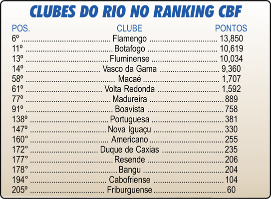 Entre os 228 rankeados, obtendo apenas 25 pontos cada um, ficaram juntos dez clubes: Bahia de Feira e Juazeiro (BA), Barbalha e Horizonte (CE), Mixto e Rondonópolis (MT), Flamengo (PI), Lagarto (SE), Naviraiense (MS), Paragominas (PA) e São Luiz (RS).