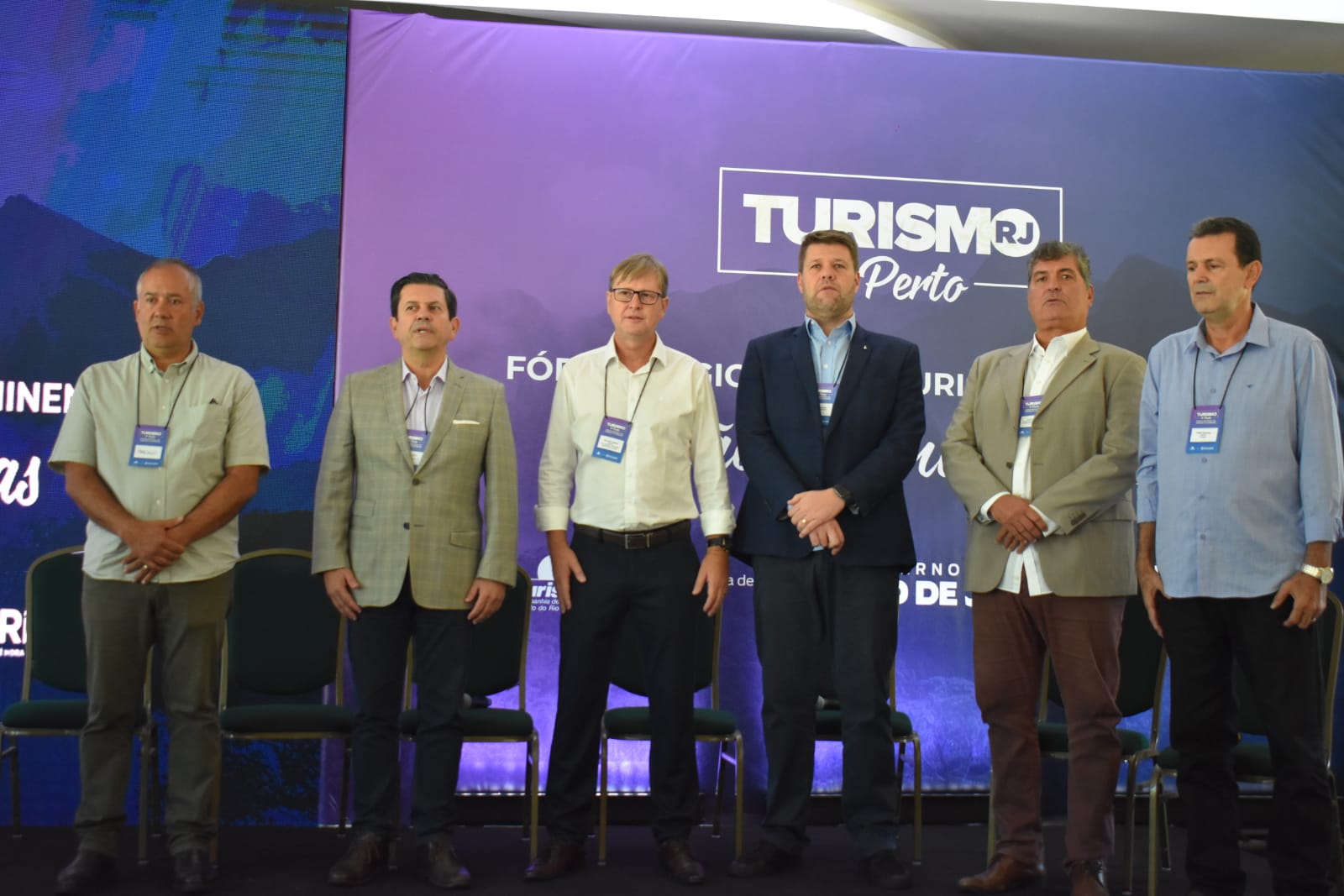 A retomada das atividades turísticas e o potencial turístico da região das Agulhas Negras, formada pelos municípios de Resende, Itatiaia, Porto Real e Quatis, foram debatidas nesta quarta-feira, dia 27, durante a sexta edição do Fórum Regional do Turismo, promovido pela Secretaria de Estado de Turismo (Setur-RJ) e a Companhia de Turismo do Estado do Rio de Janeiro (TurisRio), no Catre Convenções, na Casa da Pedra, em Penedo. O Fórum foi aberto pelo secretário de Estado de Turismo, Sávio Neves. O evento contou ainda com a participação do prefeito de Itatiaia Irineu Nogueira e do vice-prefeito e secretário de Turismo, Denilson Sampaio; do deputado federal Otávio Leite e os deputados estaduais Gustavo Tutuca, Noel de Carvalho e Adriana Balthazar; além do prefeito de Quatis, Aluísio d’Elias, o presidente do Conselho Regional de Turismo da Região das Agulhas Negras (CONRETUR), Marcelo Carrasco e representantes das prefeituras de Resende, Porto Real e Quatis.