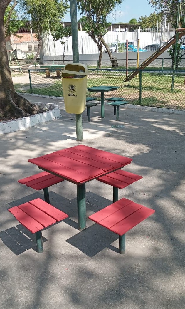 Entre os serviços realizados nas praças pela SMO estão a pintura, recuperação de bancos e brinquedos - Divulgação/PMVR