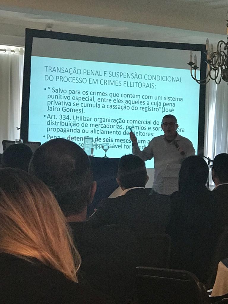 A palestra de encerramento do evento foi feita pelo procurador de Justiça do Rio de Janeiro, Marcos Ramayana, renomado professor. Ele tratou sobre temas, como prestação de contas de candidatos, inelegibilidade, janela partidária que abre durante 30 dias até o dia 4 de abril de 2020. Ramayana fez suas considerações particulares sobre dois temas, no sentido de chamar atenção dos presentes acerca de duas situações. A primeira é a respeito do quociente eleitoral no caso de suplentes. Atualmente, para ser eleito o político precisa alcançar votação nominal mínima de 10% do quociente eleitoral. “A Justiça Eleitoral não pode abrir mão de sua jurisdição, hoje precisamos ter cuidado porque o partido atinge quatro vagas na câmara, mas os votos de cada um precisa alcançar o percentual exigido. Quando se chama um suplente, a Justiça eleitoral está errando em não observar também essa questão e deixar a cargo para Justiça comum. Para mim isso é abrir mão da sua jurisdição”, explicou o procurador.