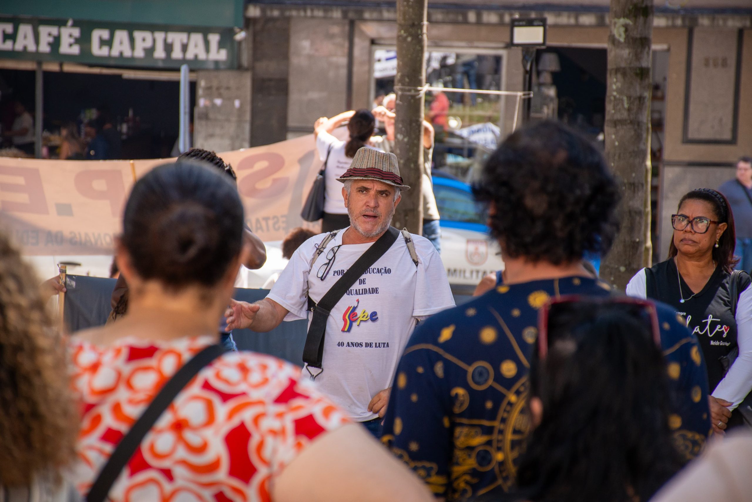 De acordo com um dos diretores do Sepe, Carlos Roberto Almeida, o ato serve para que os professores tenham atenção merecida. “O ato teve a presença massiva dos professores que estão insatisfeitos com a realidade de suas escolas. As escolas não têm autônima já que aos diretores são indicações, e temos diversos outros problemas: discutir o reajuste da inflação – o salário mínimo na rede está em R$ 1.320. Queremos falar sobre cumprimento da lei do piso do magistério, discutir sobre alterações na previdência; e ainda tratar sobre as condições de trabalho como a falta de materiais pedagógicos e infraestrutura, salas de aulas com mais de dois alunos de inclusão, sem agentes de apoio”, cita.