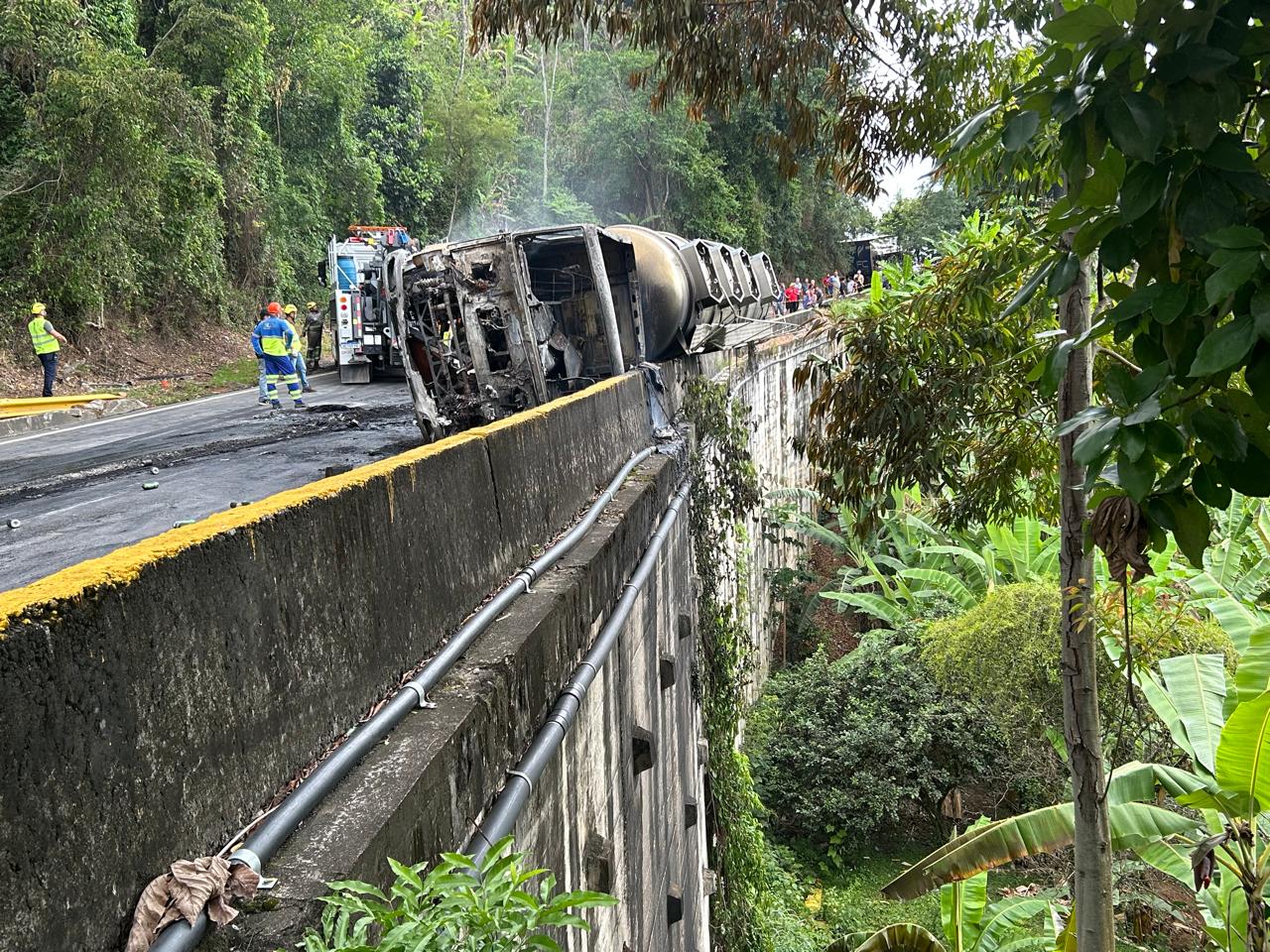 Desde o início da tarde, equipes da PRF atuaram na área para contenção de riscos, transbordo parcial da carga e retirada dos veículos. Durante a operação, o tráfego funcionou em mão dupla pela pista de subida, garantindo o escoamento emergencial do fluxo.