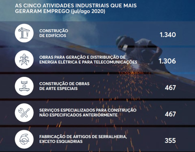 Em julho e agosto, a indústria recuperou 16,5% das vagas perdidas entre março e junho, de acordo com a plataforma, que utiliza dados oficiais do Cadastro Geral de Empregados e Desempregados (Caged) do governo federal. A cadeia da Construção Civil liderou esse movimento. A taxa de juros baixa incentiva a aquisição de financiamento habitacional, uma vez que o valor da prestação passa a caber no bolso. A pandemia também colaborou com esse comportamento, uma vez que, em casa, as pessoas começaram a sentir necessidade de fazer um upgrade, mudando para um espaço maior, elevando, assim, as vendas das construtoras.