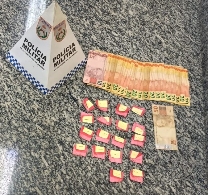 Durante a ação, um dos suspeitos foi localizado e abordado após tentar fugir por ruas próximas. Com ele, os policiais encontraram R$ 420 em dinheiro, em notas fracionadas. Em buscas realizadas nas imediações, também foram apreendidos 18 sacolés de substância semelhante à cocaína.