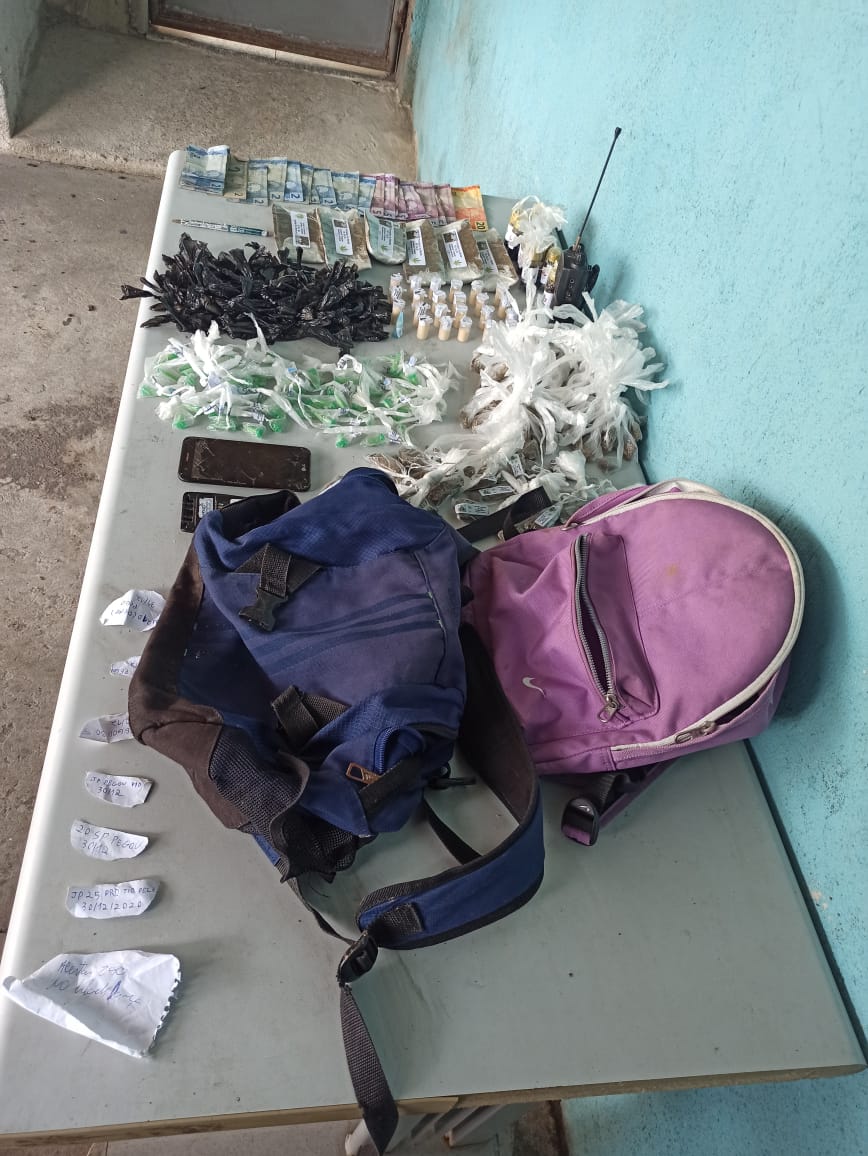 De acordo com os agentes na ação que aconteceu na Travessa Veneza foram apreendidas certa quantidade de droga, rádios comunicadores e um caderno com anotações de venda de drogas.